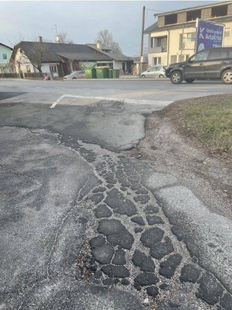 Občan je zapisal: »Nemogoče se je na svoji strani cestišča vključiti v promet na glavno cesto. Potrebno se je postaviti bolj levo, mimo luknje, pri čemer se ovira promet iz nasprotne smeri, sploh pri večjih vozilih (kombiji, tovornjaki ...). Zaradi tega je poškodovana tudi druga stran cestišča.«
