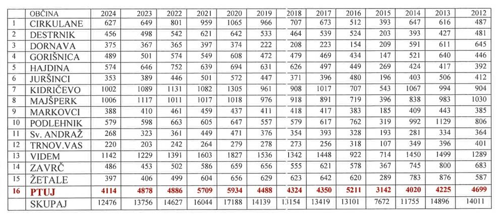 Na spodnji fotografiji je pregled po občinah za več kot deset let.