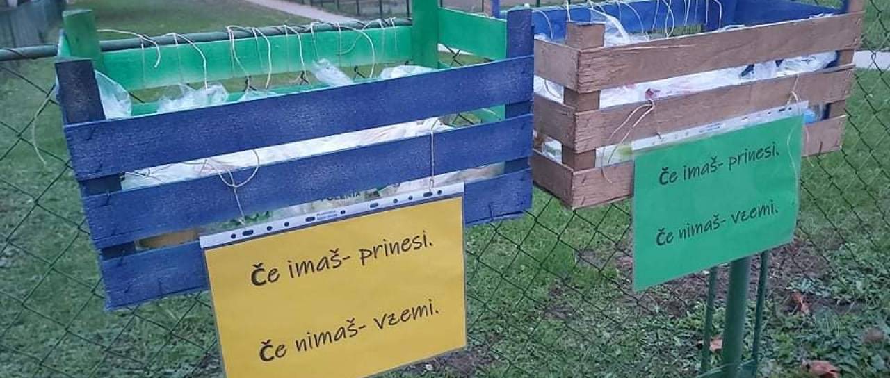 »Če imaš - prinesi, če nimaš - vzemi,« veli napis na zabojnikoma.