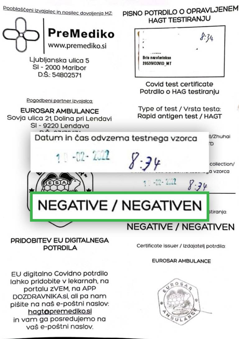 Ker sem se počutila vedno slabše, sem se odločila za še en hitri test, tokrat v kontejnerju preko ceste pri drugem nakupovalnem središču. Gospa je bris iz nosu vzela malo bolje kot pri BTC-ju, a je rezultat po 15 minutah bil ponovno negativen.