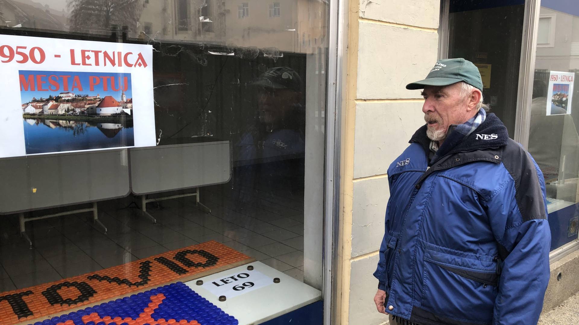 Habjaniča smo tokrat srečali v središču Ptuja, v Miklošičevi ulici, kjer je dal svoj delež do nedavnega praznemu trgovskemu prostoru oziroma tamkajšnji izložbi.