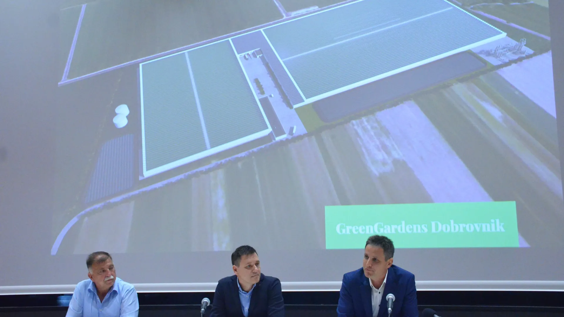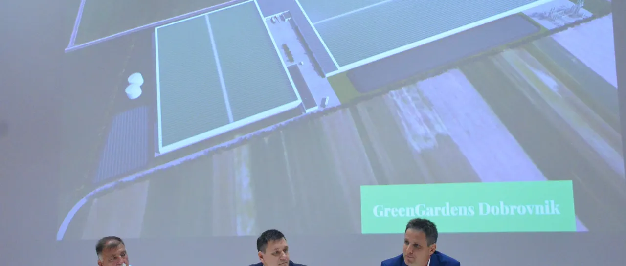 Na današnji novinarski konferenci podjetja Skrinja BB o prihajajočem razvoju največje cone v Sloveniji za pridelavo zelenjave v steklenjakih sta v Dobrovniku spregovorila partnerja projekta GreenGardens Matej Bandelj, nadzorni inženir, operativni vodja projekta ter podjetnik, ki se ukvarja z razvojem nepremičnin, in Gregor Počivavšek, vodja mednarodnih kmetijskih projektov.