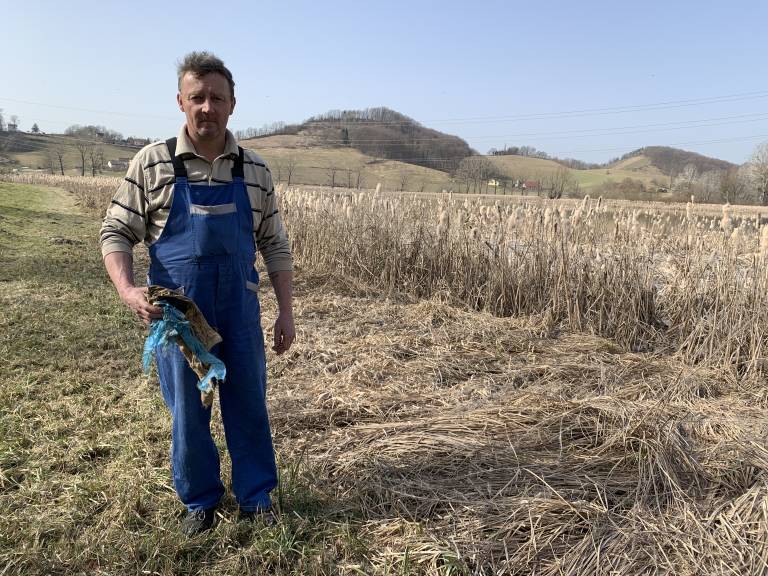 Ob travniku pri Perniškem jezeru, kjer za svojo kmetijo vsako leto spravlja krmo, Janko Gorjup vedno znova najde odvržene plastenke in pločevinke.
