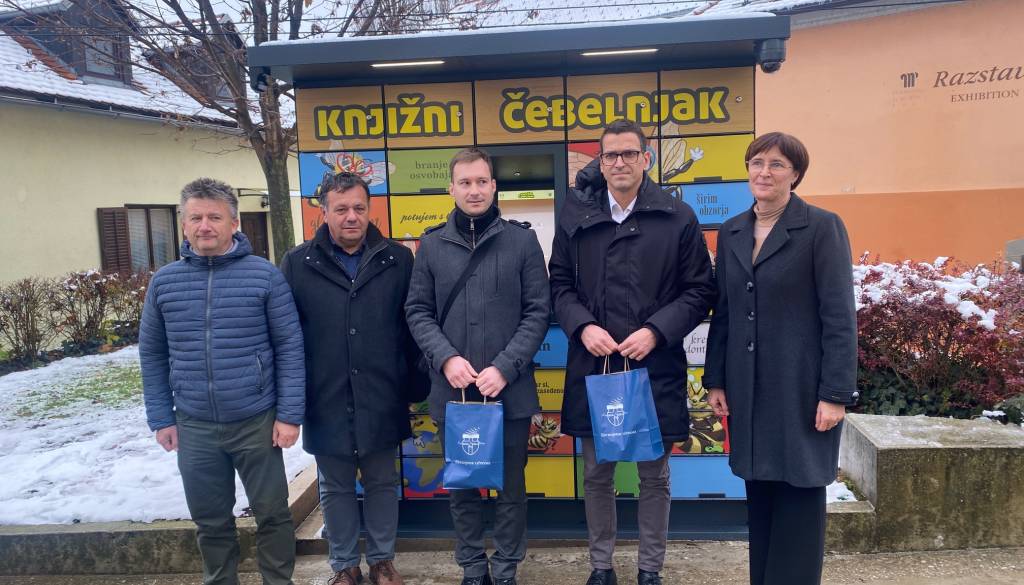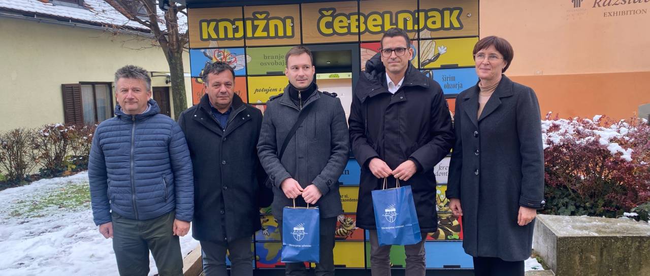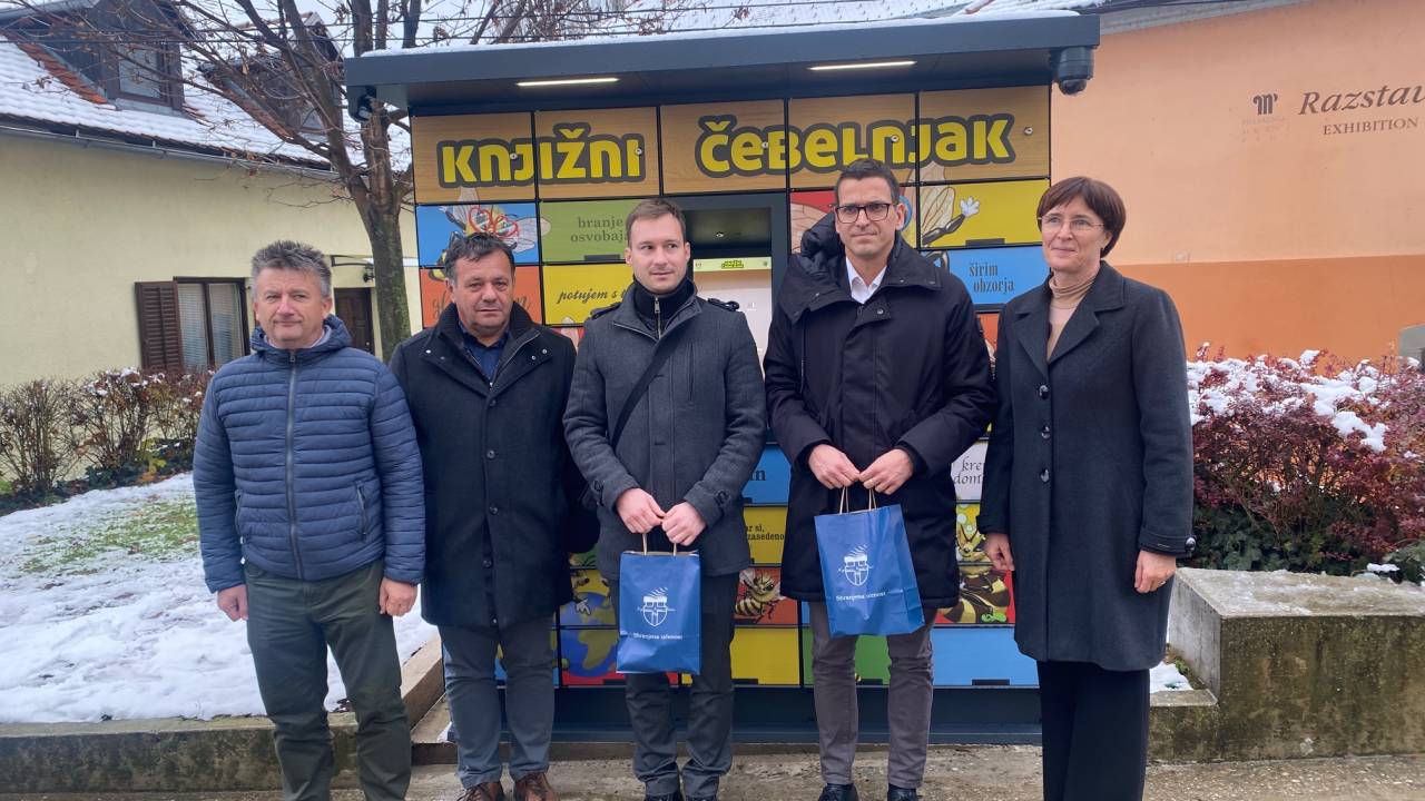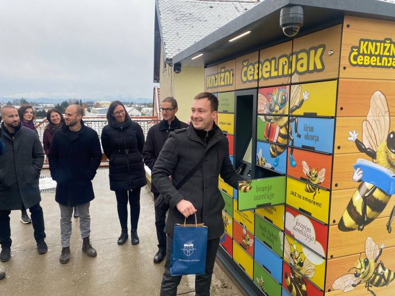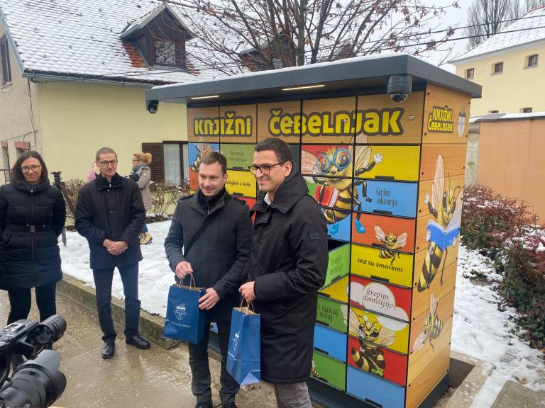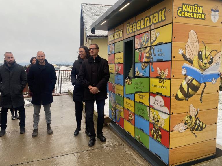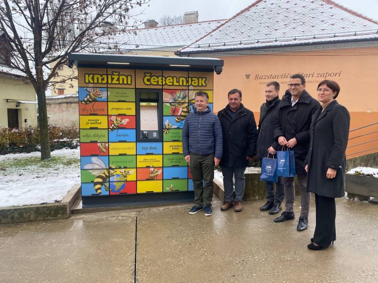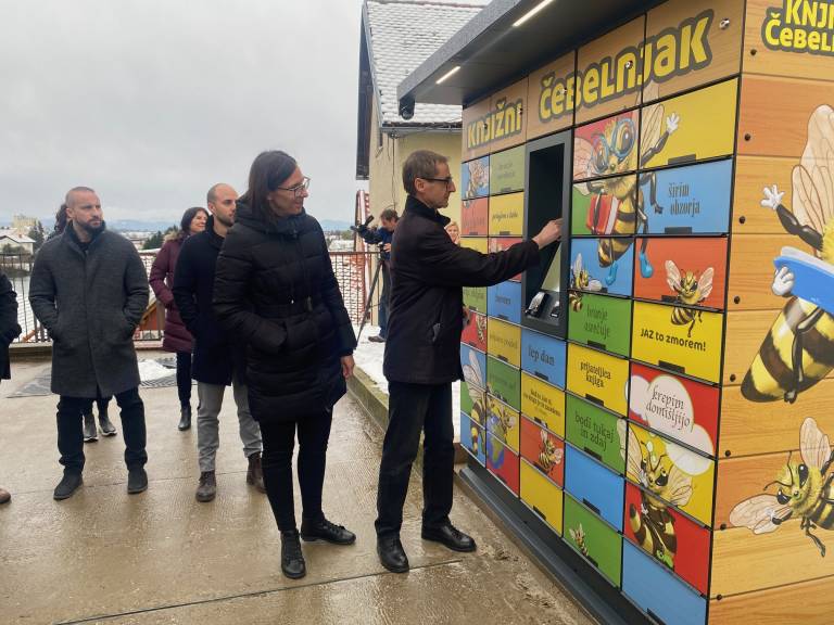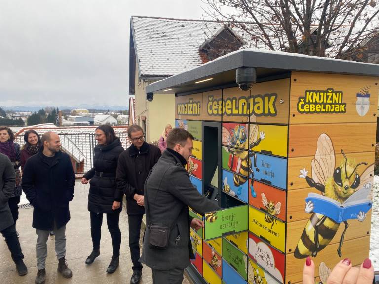 V razstavišču Knjižnice Ivana Potrča Ptuj so danes predstavili nov knjigomat, poimenovan Knjižni čebelnjak, in ga predali namenu.