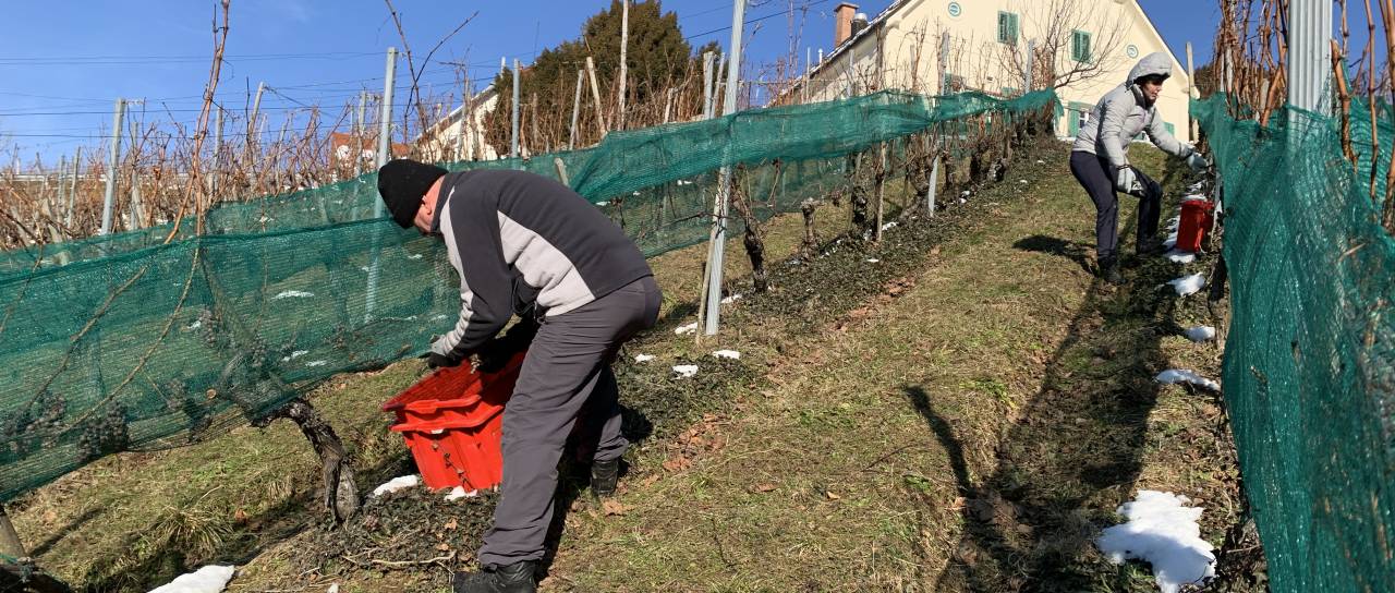 Namesto polnih grozdov, ki bi jih trgali na običajni trgatvi, so danes v vinogradu Univerzitetnega centra za vinogradništvo in vinarstvo Meranovo Fakultete za kmetijstvo in biosistemske vede Univerze v Mariboru obirali že rahlo ovenele in osušene grozde z gnilobo. A prav iz takšnega grozdja lahko nastane predikatno vino.