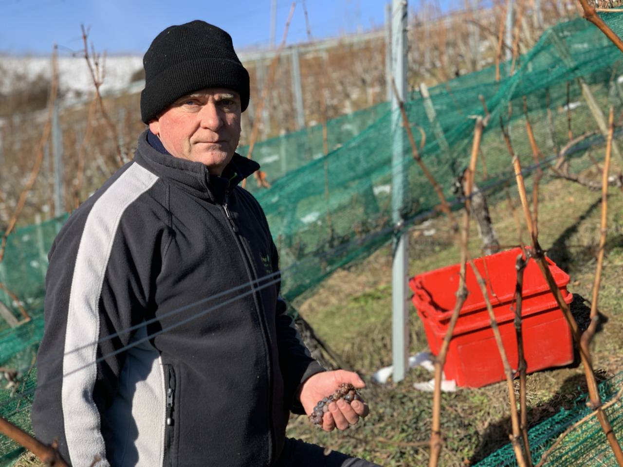 »Praktično nam je v moji 36-letni delovni karieri tukaj uspelo samo enkrat potrgati ledeno trgatev,« pravi vodja proizvodnje Meranovo.