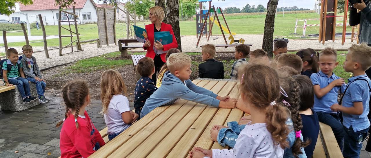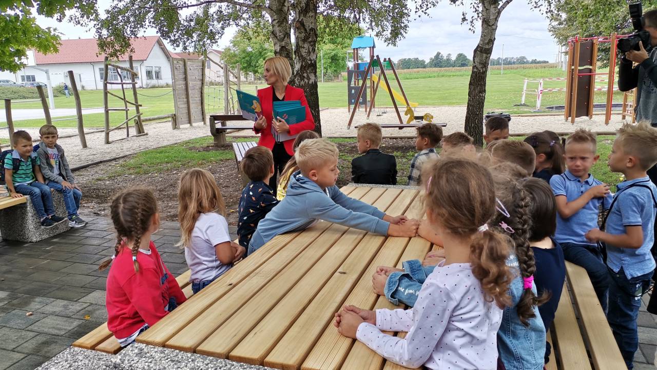»Učilnica na prostem je v popoldanskem času lahko tudi v drugi vlogi. Klopi in mize so za to, da lahko občani in občanke tudi malo posedijo, se malo podružijo, mogoče kdo vrže kakšne karte, zaigra kak šah,« je na novo pridobitev povabila Gajšek.