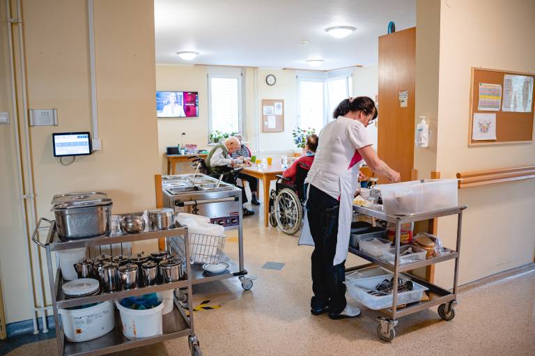 Tekom našega obiska smo ugotovili, da si oskrbovalke zares težko privoščijo odmor – pravzaprav na redni bazi druga drugo opozarjajo, da morajo dovolj piti, saj tudi za kozarec vode težko najdejo čas.