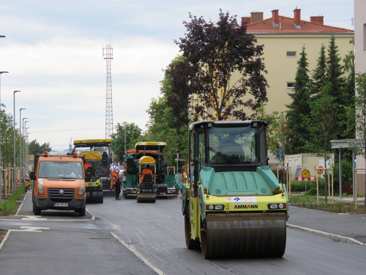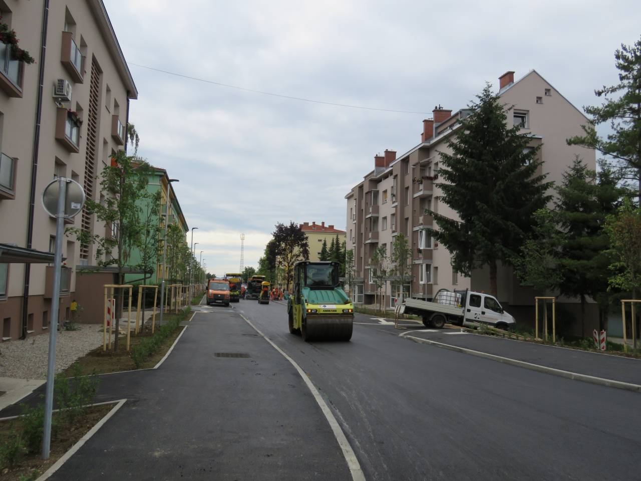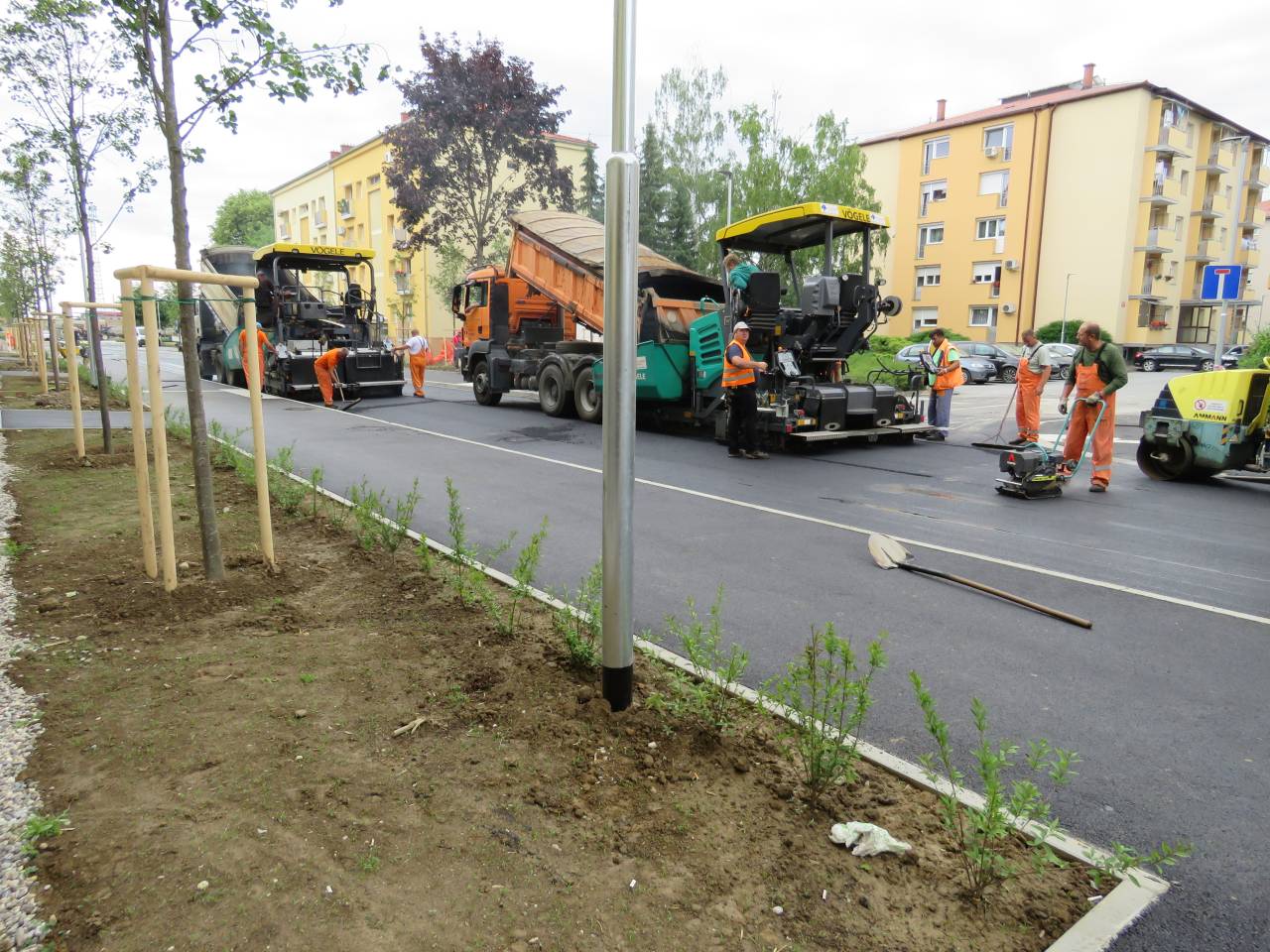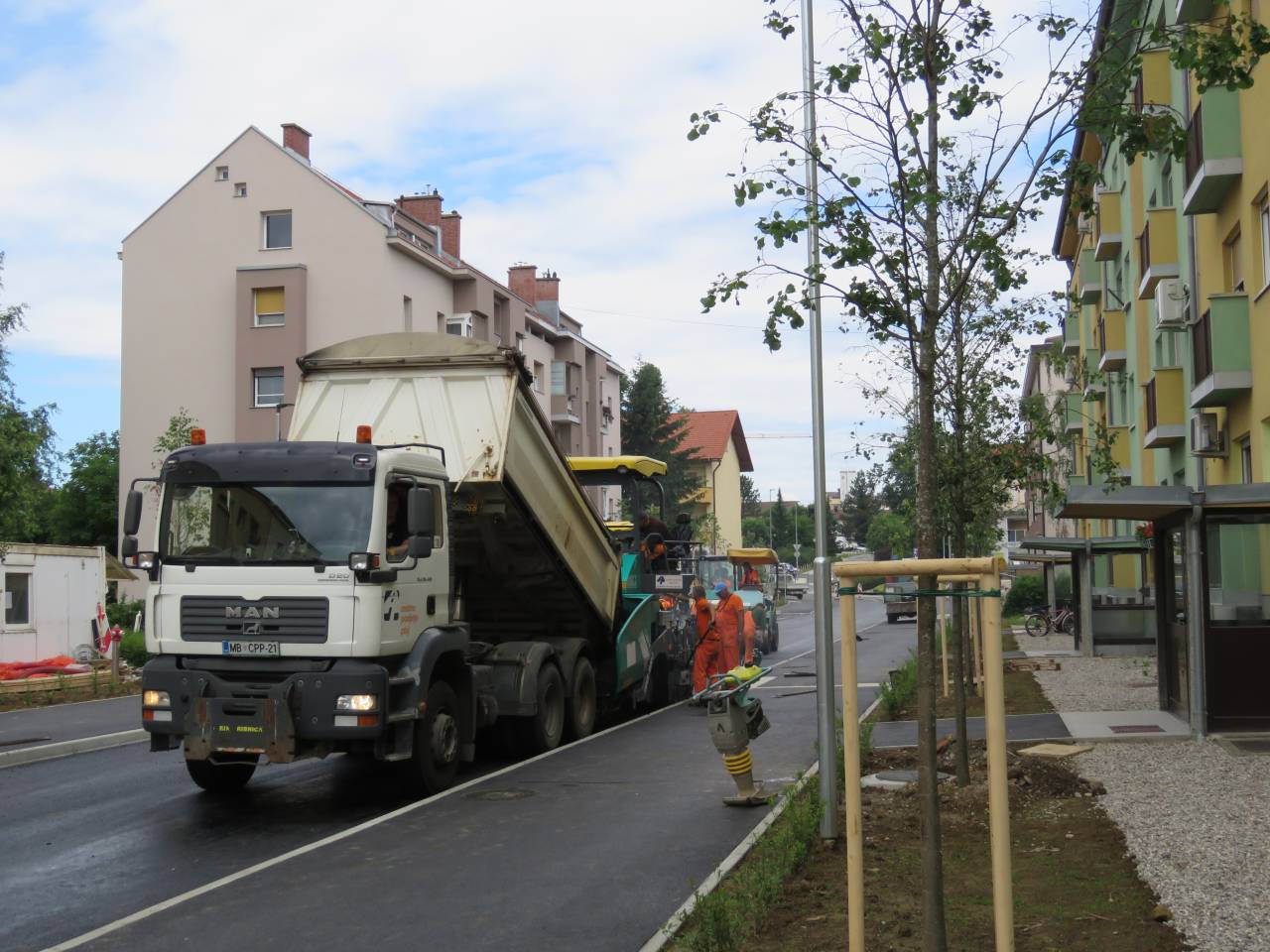 Delavci so danes asfaltirali okoli 190 metrov ceste s pločniki in kolesarskimi stezami, od križišča z Osojnikovo cesto do krožnega križišča s Potrčevo cesto.