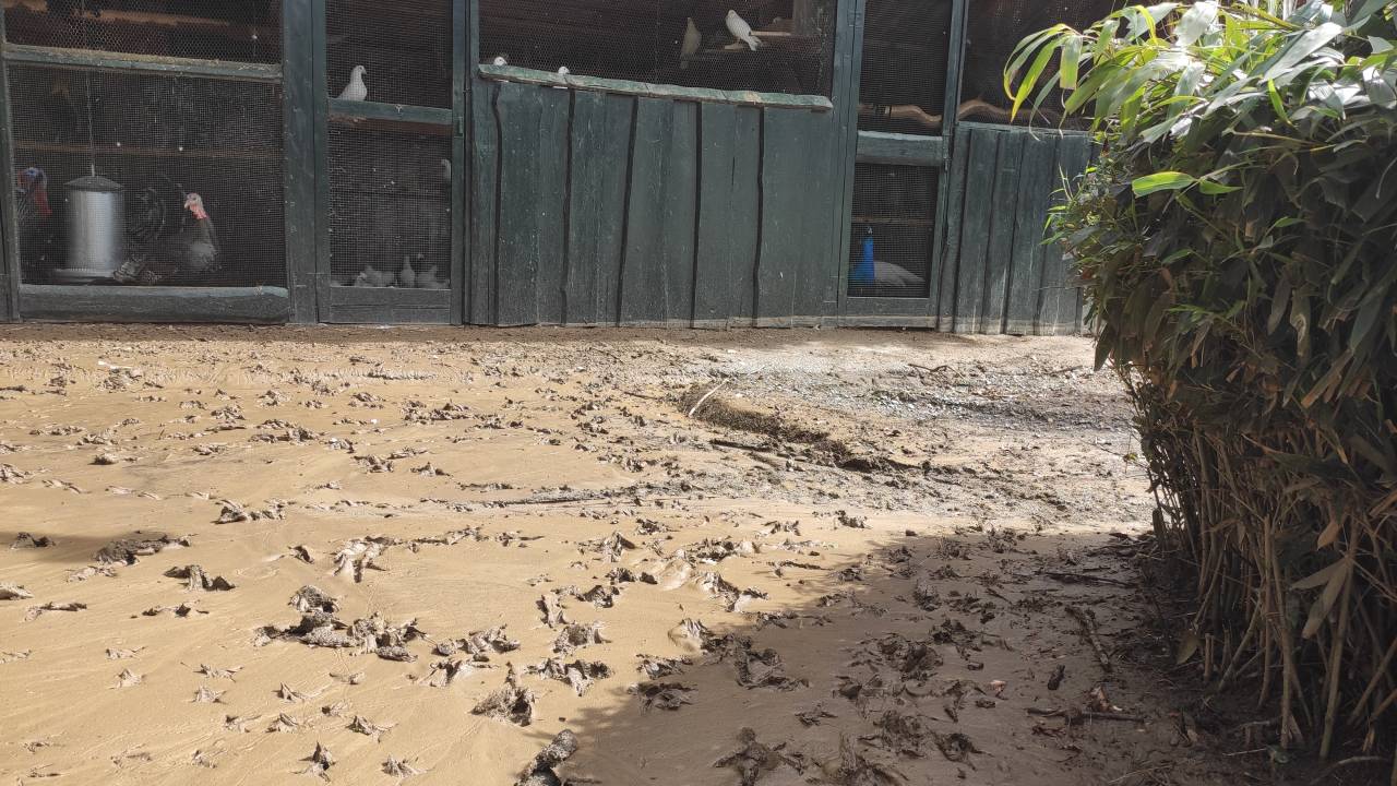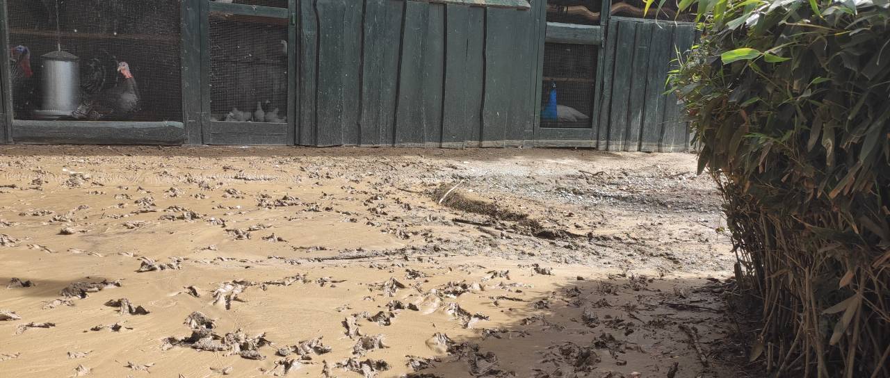 V nekaj minutah je ob včerajšnjem močnem neurju bližnji potok razdejal živalski vrt Sikaluzoo. Nanosil je veje, listje, tudi do 20 centimetrov blata.