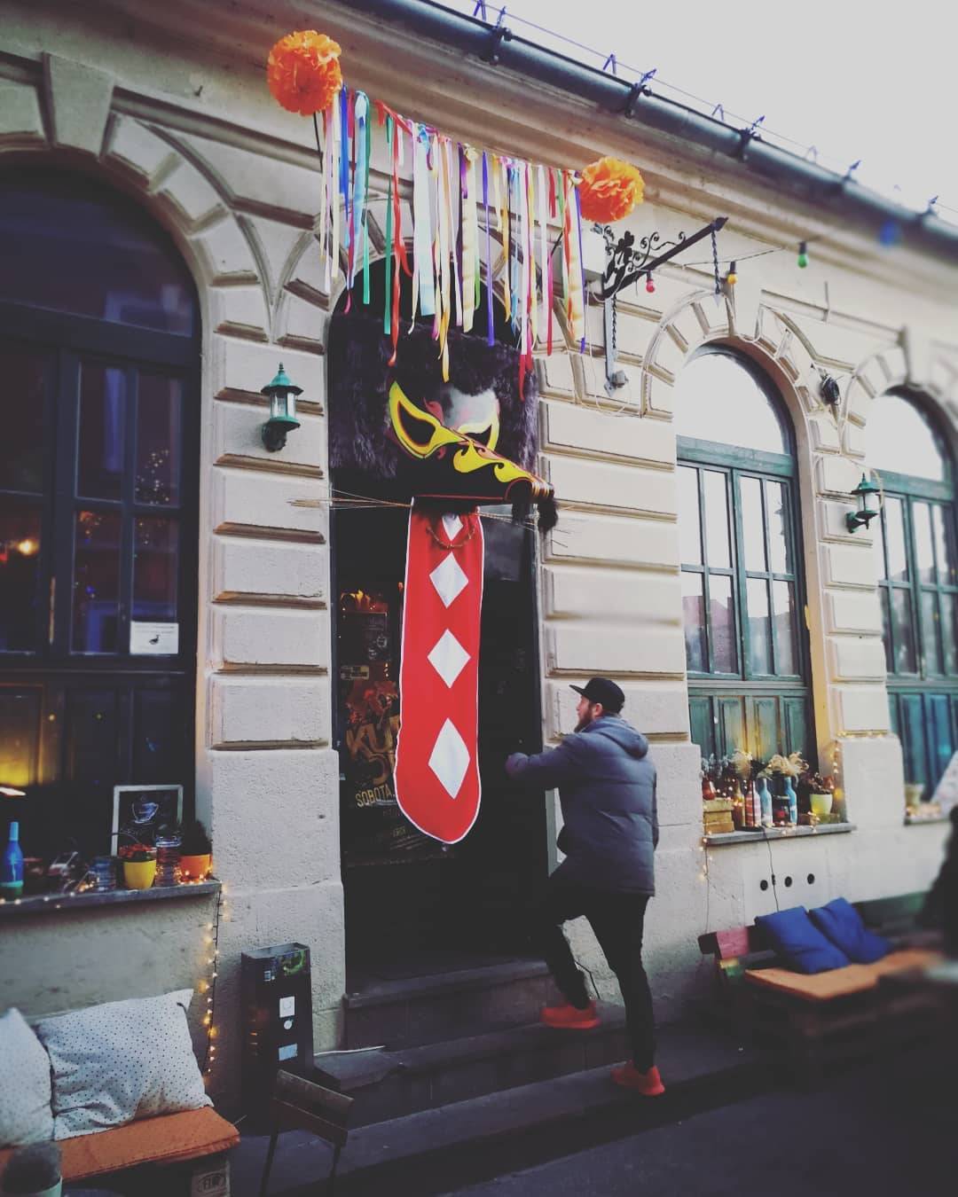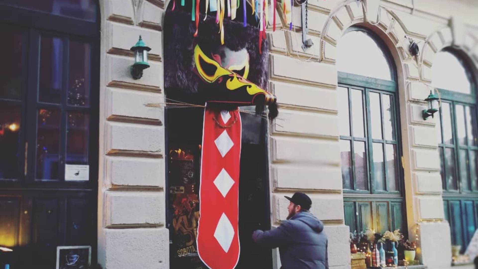 Zamisel za orjaško kurentovo masko je nastala povsem spontano, je razkril lastnik Kavarne Bodi. Zagotovil je tudi, da orjaški kurent zle duhove iz pustno bogato okrašene kavarne preganja zelo uspešno.