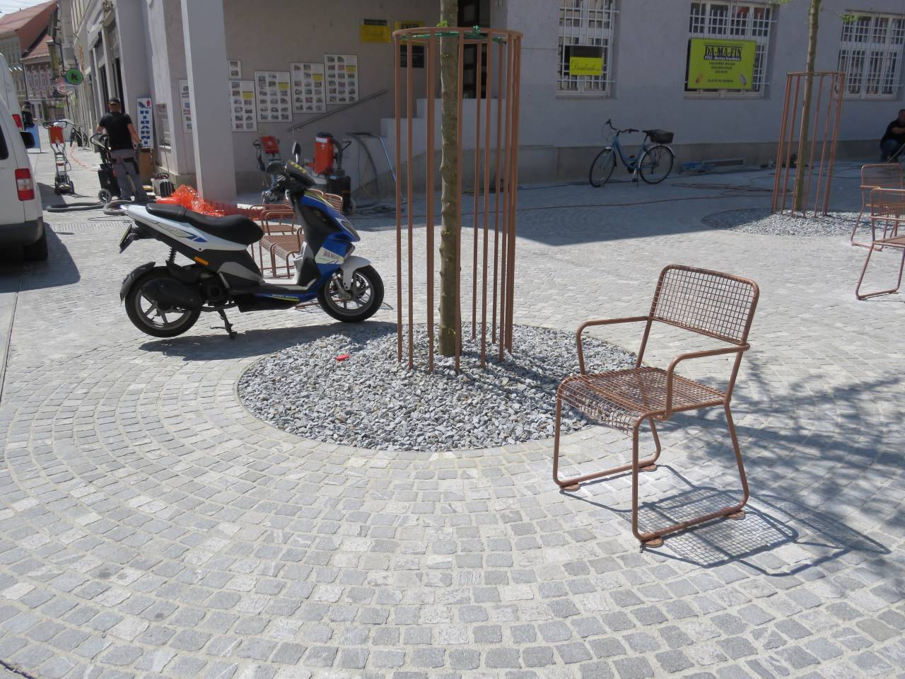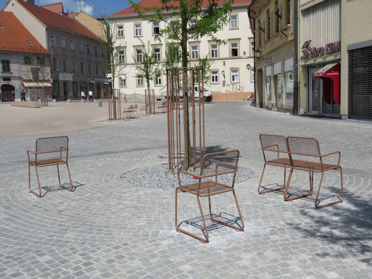 V teh dneh so namreč na tržnici namesto nekdanjih lesenih klopi v senci dreves postavili okoli 50 kovinskih stolov, pričvrščenih v tlak iz granitnih kock.