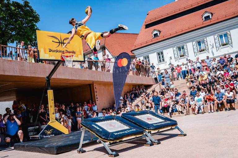 Izjemna akrobatska skupina Dunking Devils se je v okviru svoje turneje ustavila tudi v najstarejšem mestu.