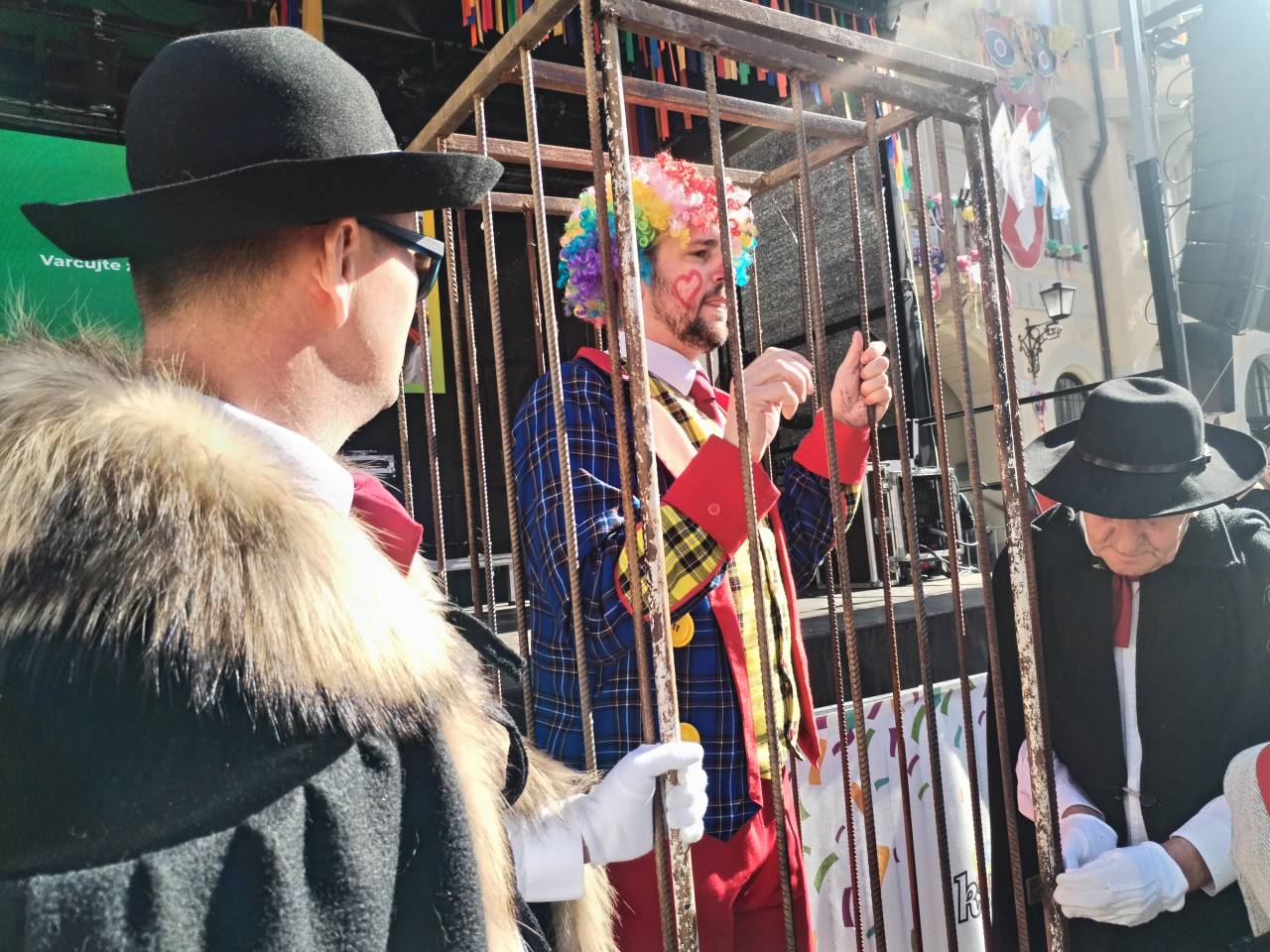 Ptujčani in Ptujčanke so točno opoldne odložili delo in skrbi. Ob 13. uri so nato simbolično zaprli še norčavega Pusta, ki je, ujet v kletki, pozival: »Uprite se maske, kurenti uprite se!«