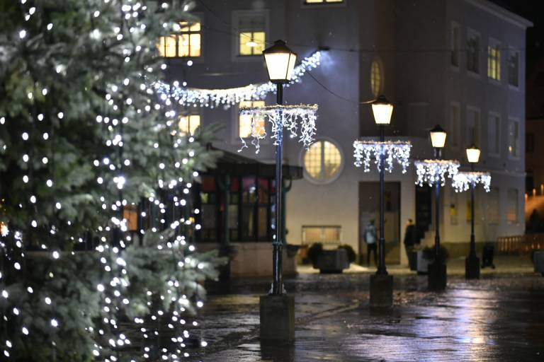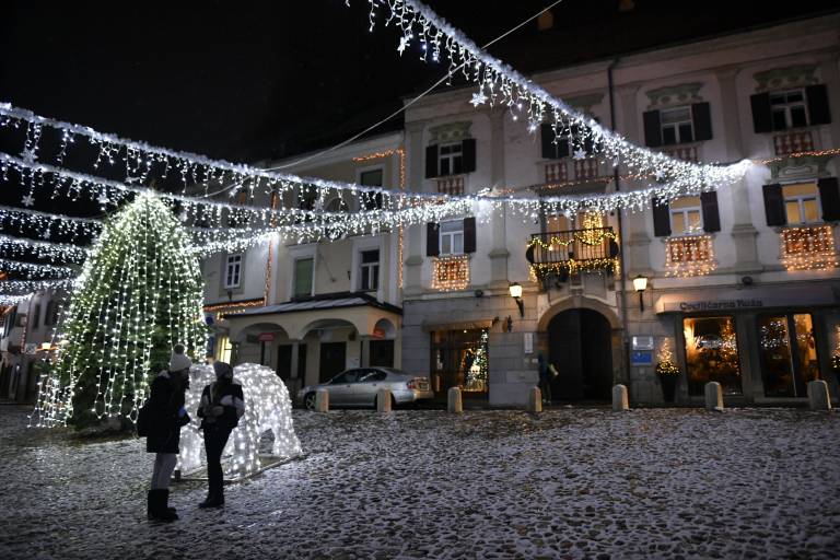 Letos je svetlobnega okrasja nekoliko več kot prejšnja leta, presenetila pa so nas kar štiri božična drevesca. Glavna novoletna smreka, tista na Mestnem trgu, je visoka 16 metrov.