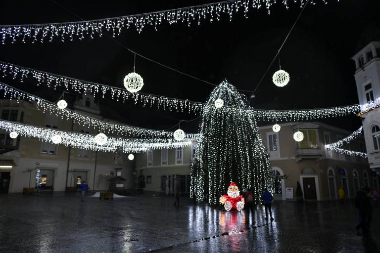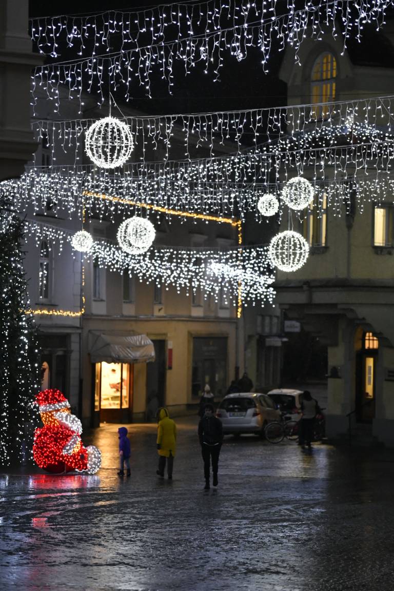 Ob svetlobnih verigah in okraskih, ki so osvetlili zgodovinska pročelja, k sprehodu skozi očarljivo staro mestno jedro vabijo tudi smrečice in božični liki.