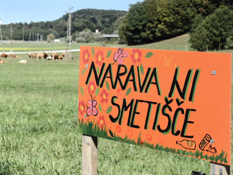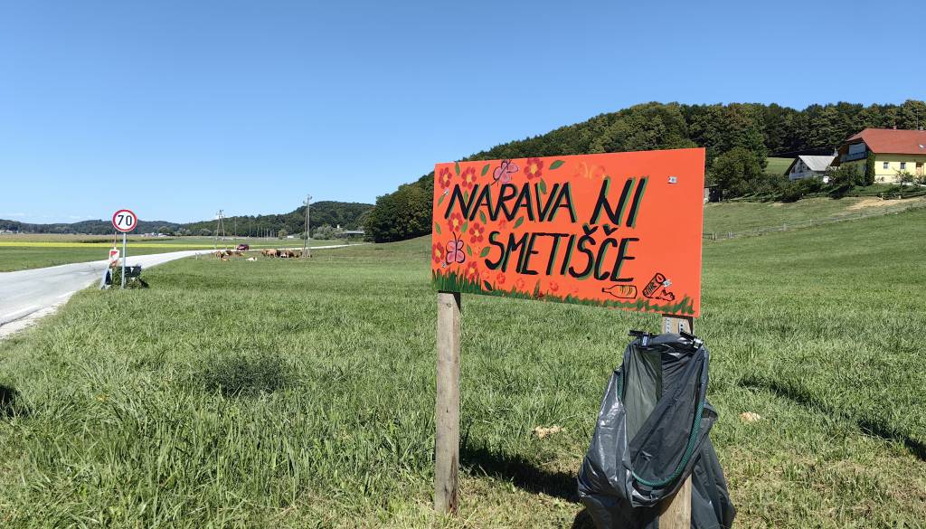 V naselju Čagona, ki spada pod občino Cerkvenjak, so postavili tablo z napisom »Narava ni smetišče« in ob njej namestili tudi vrečko za smeti.