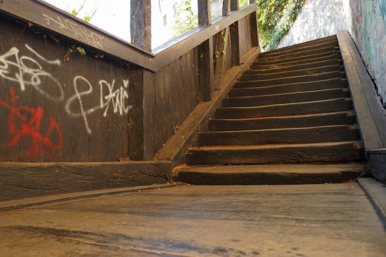 Lesene stopnice, ki vodijo na Ptujski grad, so gotovo ena skritih kotičkov Ptuja. V kratkem je načrtovana manjša sanacija.