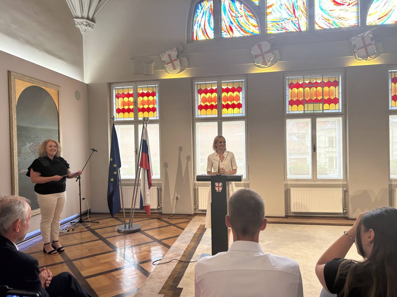 V uvodnem delu sprejema je županja Nuška Gajšek čestitala naj dijakom in jim zaželela obilo uspehov v izobraževalnem in zasebnem življenju.