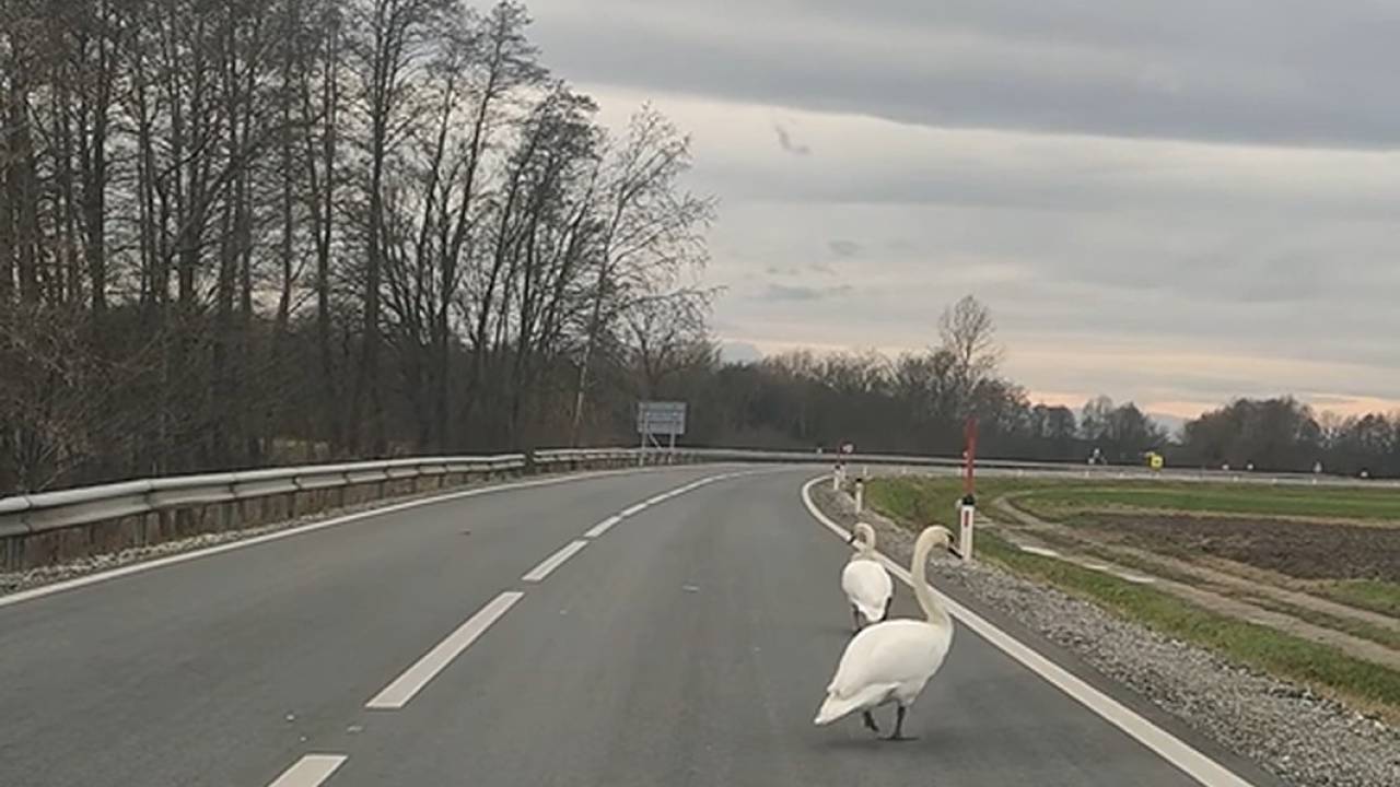 Ste že kdaj videli 'rockerske' labode? Na Hotizi so naleteli na kar dva laboda, ki se - kot prava 'rockerja' - požvižgata na cestno prometne predpise.