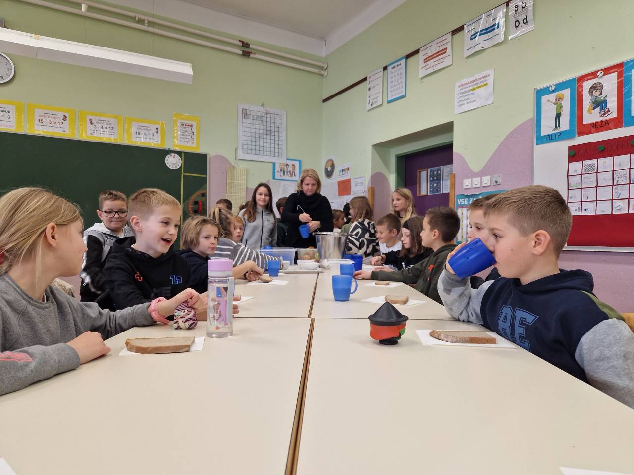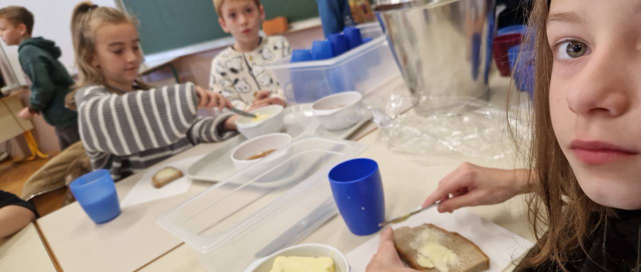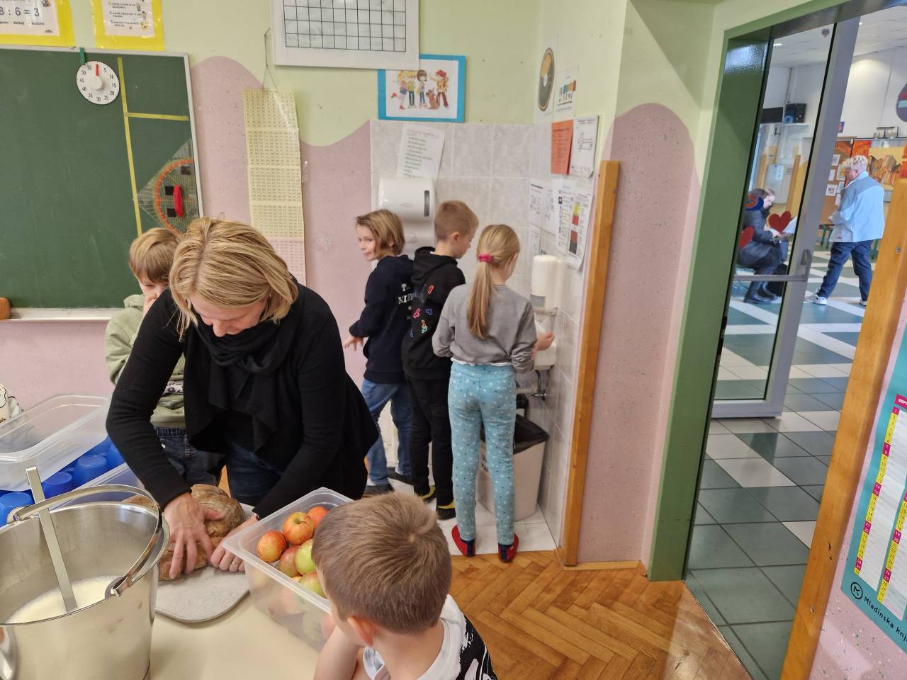 Osnovnošolci so si postregli Tradicionalni slovenski zajtrk.