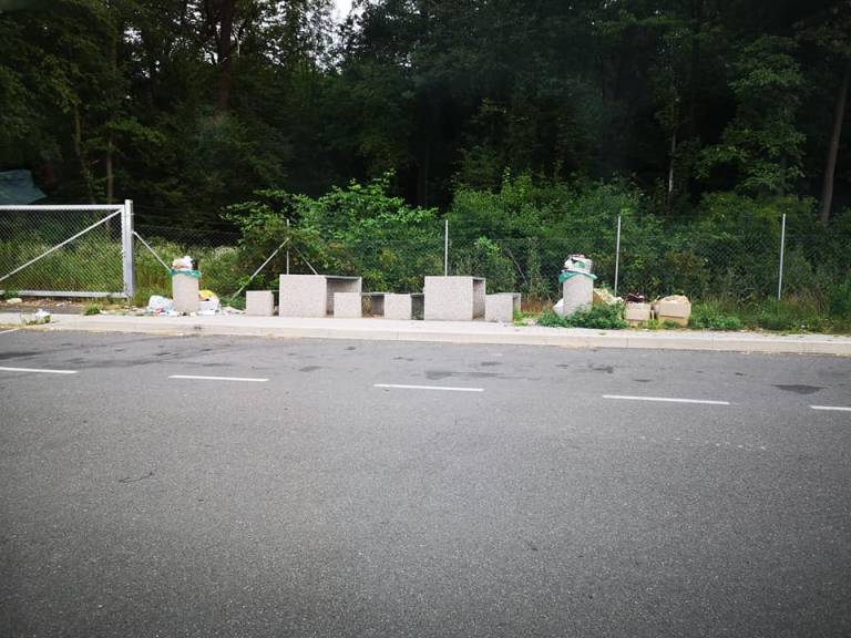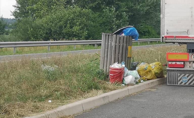 Uporabnica družbenega omrežja Facebook je naletela na goro smeti, naloženo okoli košev za smeti. Na smeti je naletela na priljubljenem počivališču nedaleč od avtoceste na relaciji Ptuj - Slovenska Bistrica. Fotografije prizora je delila v skupino Slovenija zmore.