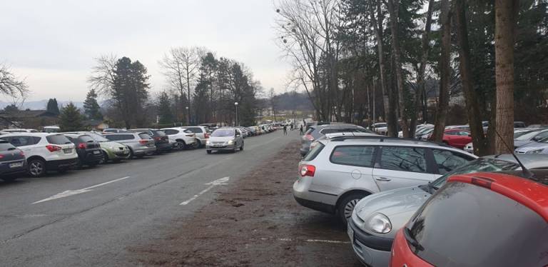Tudi parkirišče pod vznožjem smučišča na Pohorju je bilo polno avtomobilov.