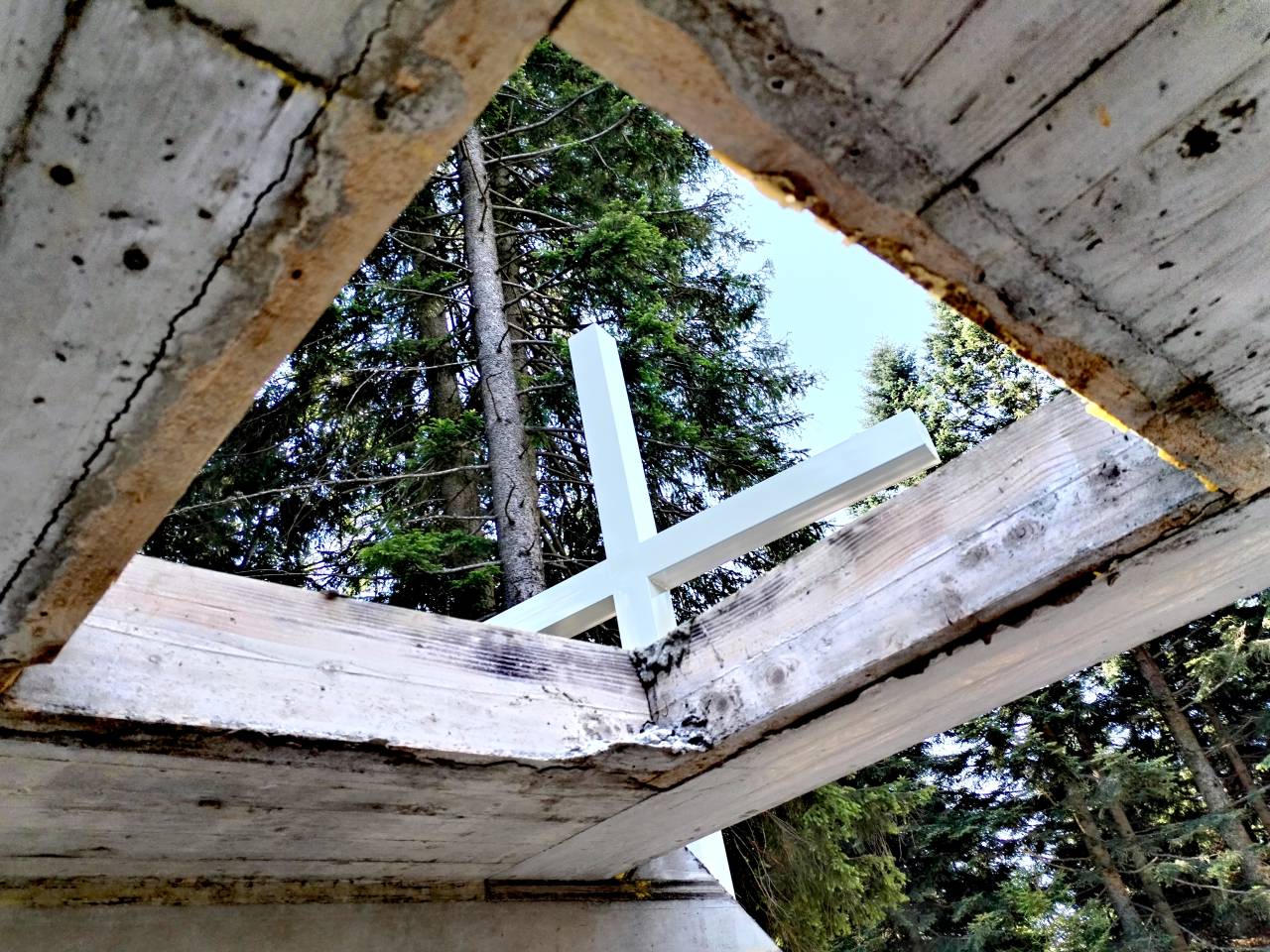 Kostrevc je pojasnil: »Prikaz trpljenja s podporo križa, to bi naj nekako bila padajoča trupla, tu pa okno v nebo.«