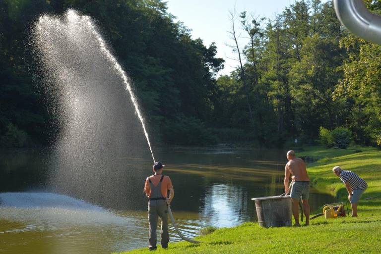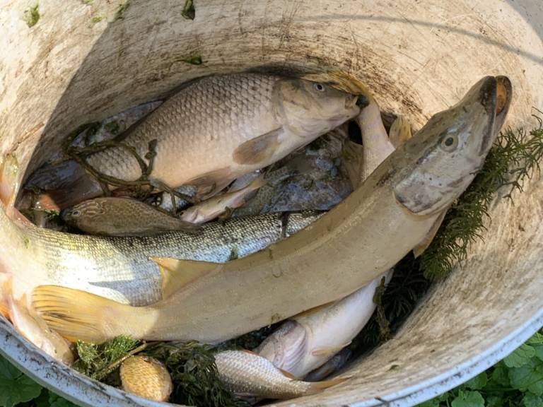 Zadnje dni se tako ukvarjajo predvsem z lovom mrtvih rib, ki jih nato s samokolnicami odpeljejo v jamo in zakopajo.