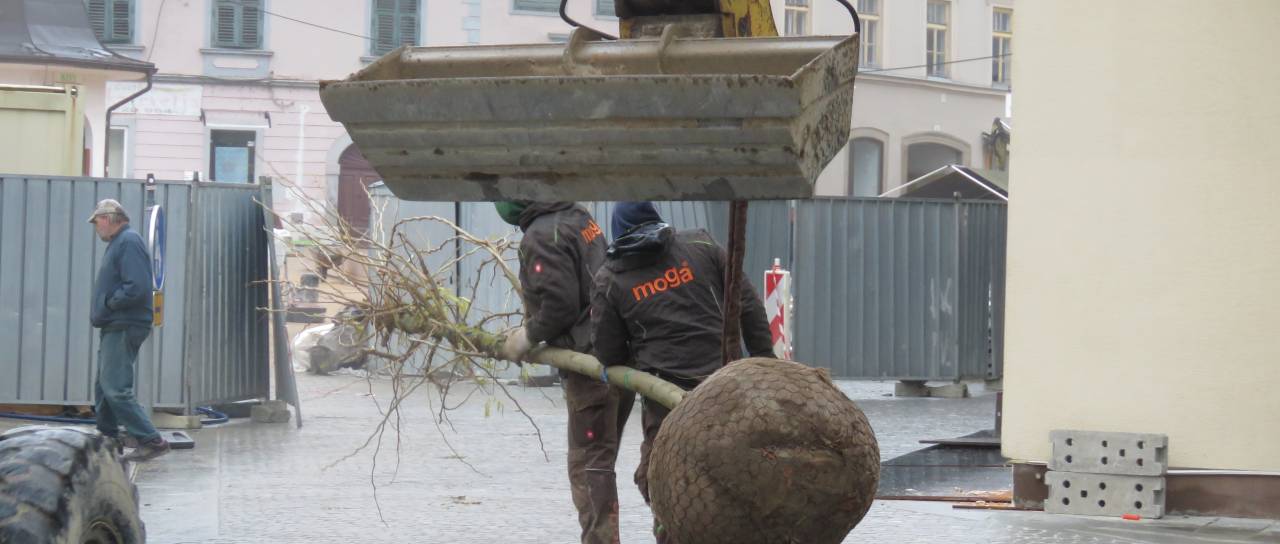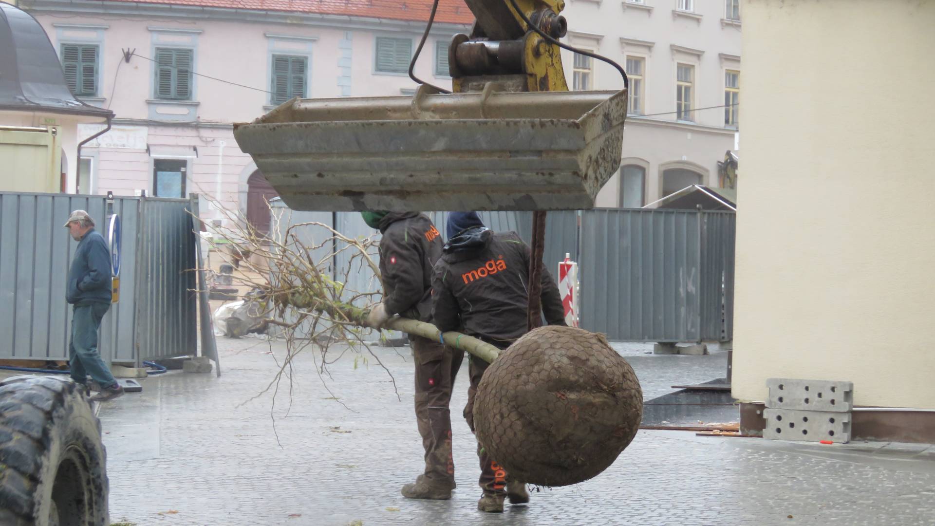 Zjutraj so na ptujski mestni tržnici začeli saditi drevesa. Ta bodo nadomestila sedem katalp, ki jih je nekdanja ptujska mestna oblast kljub nasprotovanju meščanov dala posekati.