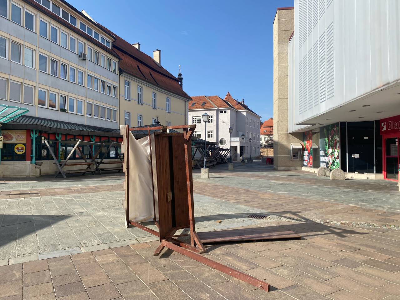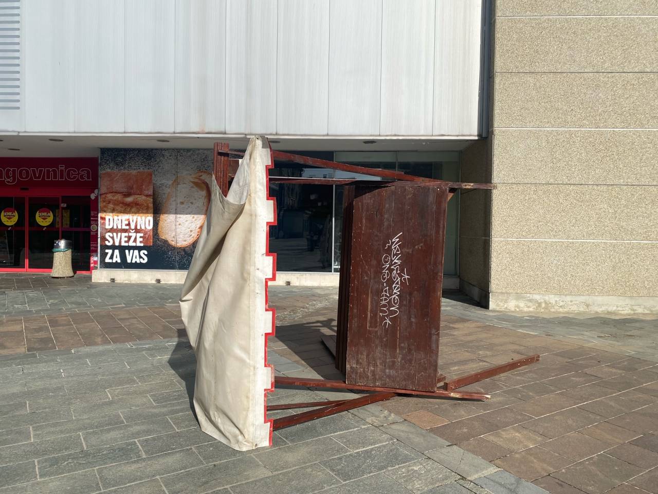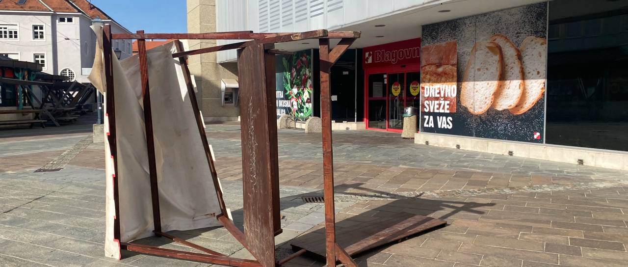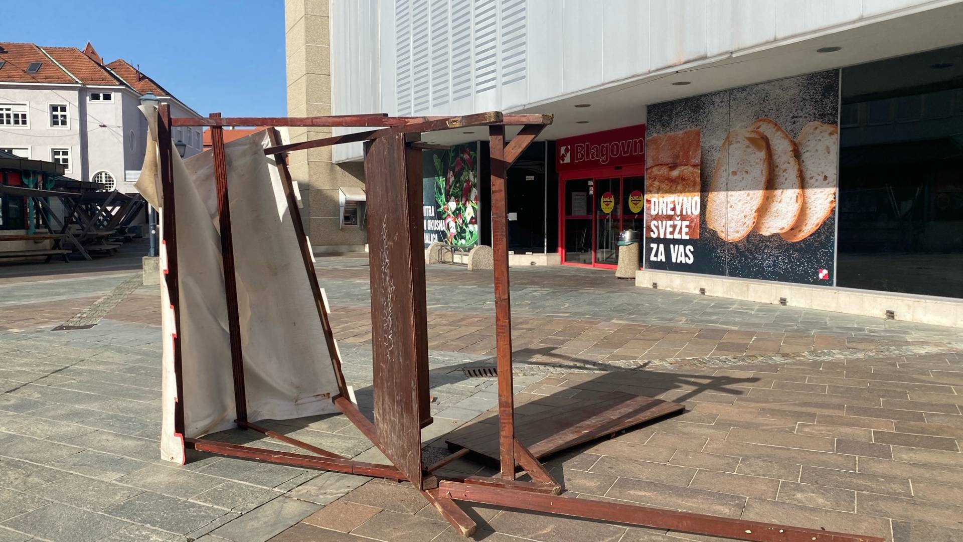 V preteklih dneh smo ob sprehodu čez staro mestno jedro Ptuja naleteli na žalosten prizor. Pred ptujsko Blagovnico je na tleh ležala prevrnjena in poškodovana stojnica.