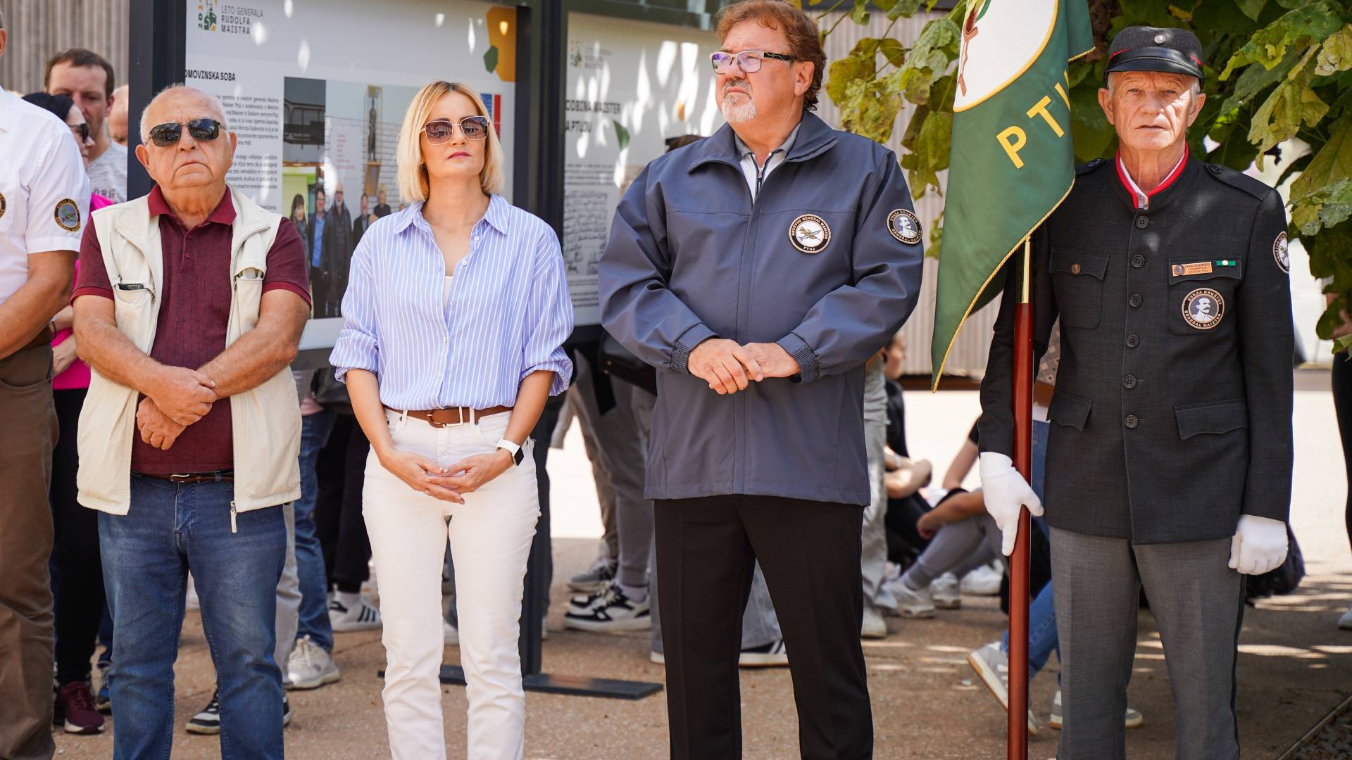 Zbrane sta nagovorila predsednik Društva general Maister Ptuj Štefan Čelan in županja Nuška Gajšek, ki je razstavo odprla.