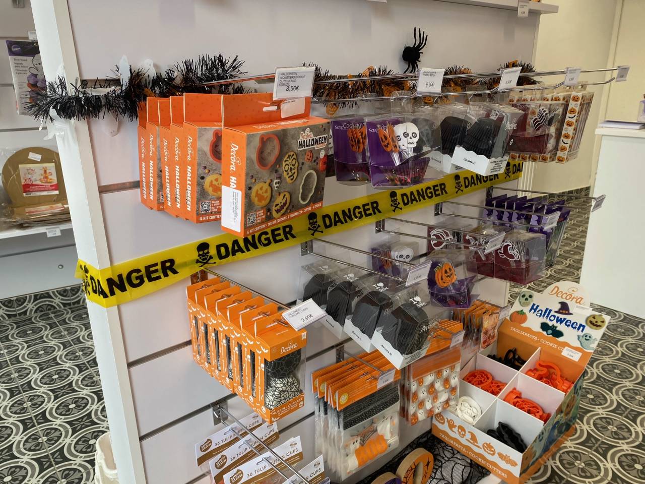 V trgovini najdemo vse pripomočke za peko, modele za torto, pekače, dekoracijo in dodatke, kot so sladkorne mase in posipi, podstavke za torte, svečke, embalažo in tudi nože.