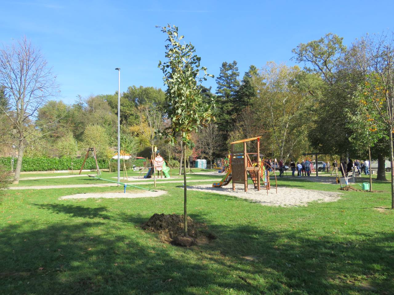 Že prejšnji teden je društvo Ptuj je naš v ptujskem mestnem parku simbolično zasadilo dve brezi. Danes je Mestna občina Ptuj v sodelovanju z donatorji še šestnajst dreves in večjih grmovnic posadila pri otroških igralih v parku Ljudski vrt.