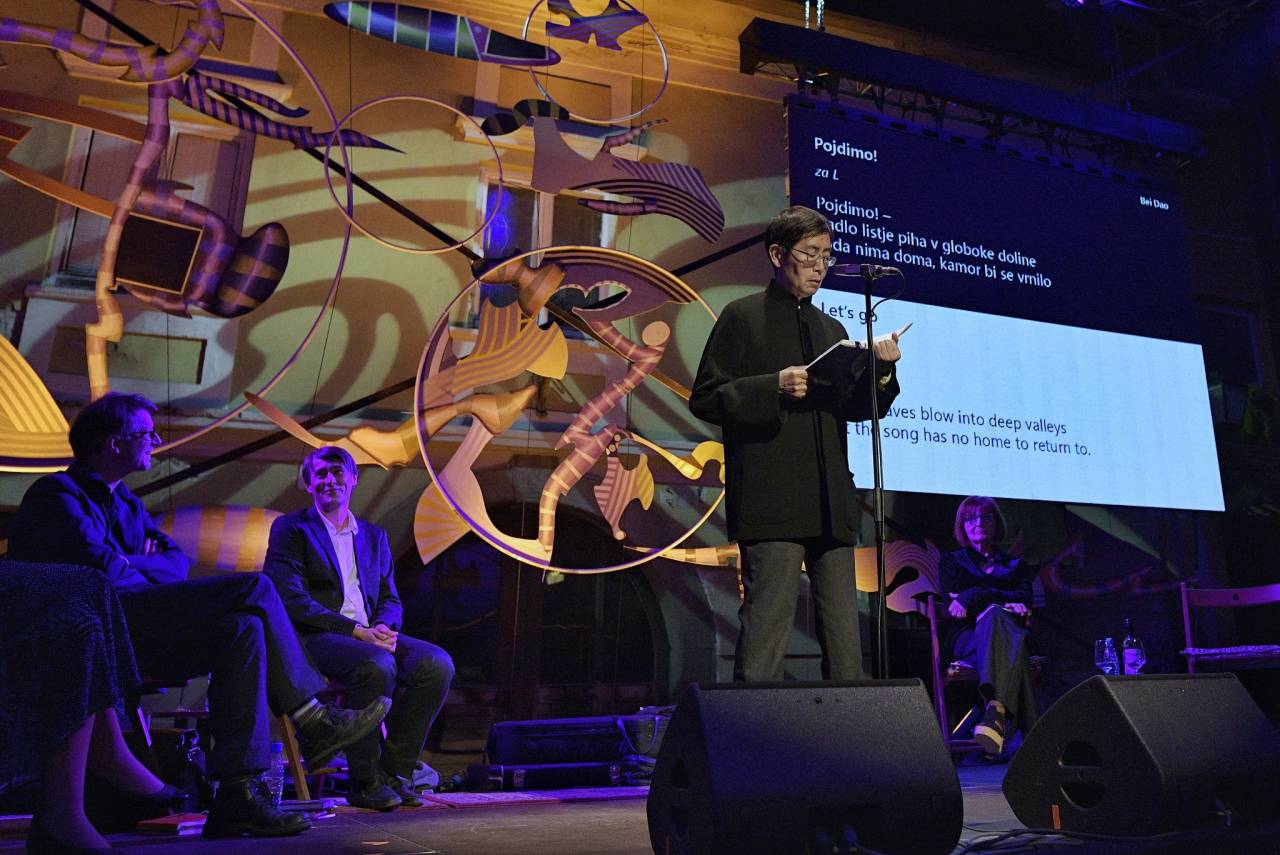 Sledilo je Veliko pesniško branje, kjer sta pesmi prebirala častna gosta letošnjega festivala, srbska pesnica Radmila Lazić in kitajski pesnik Bei Dao, ter Nemec Jan Wagner in Slovenka Glorjana Veber. Za zaključek prvega festivalskega večera je intimno vzdušje pričarala glasbena skupina Pliš.