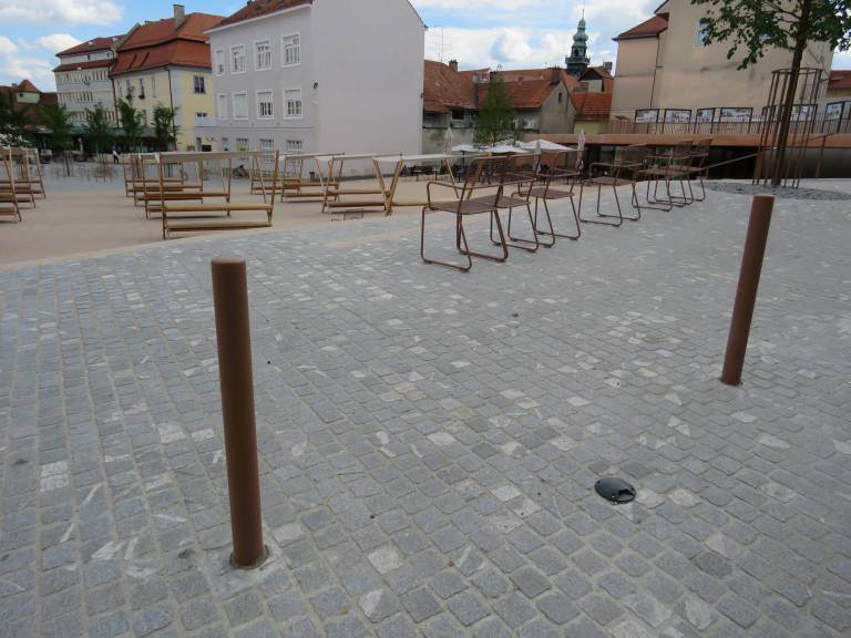 Danes, 13. julija, so na Slomškovi ulici na Ptuju postavili 22 kovinskih konfinov ozirom stebričev za preprečitev prometa.