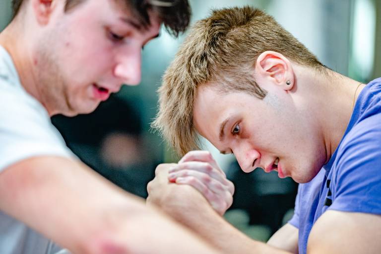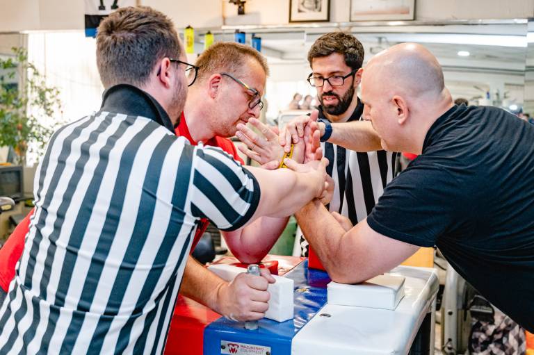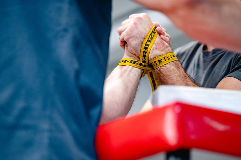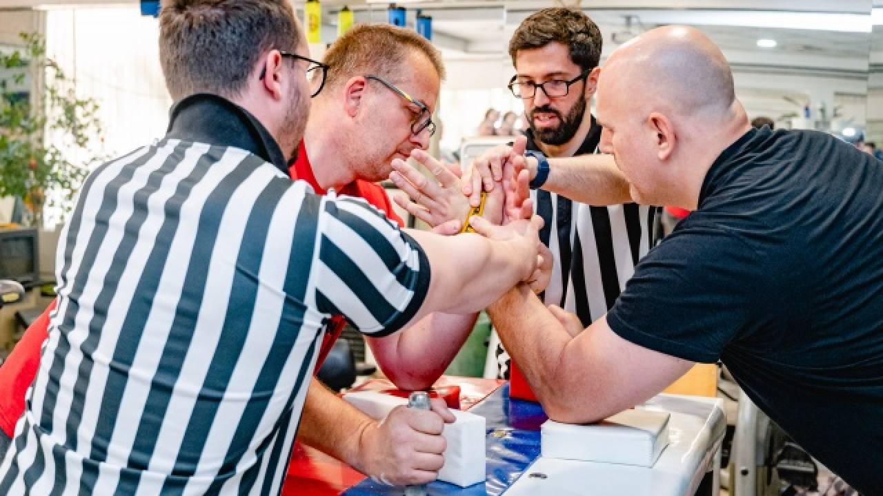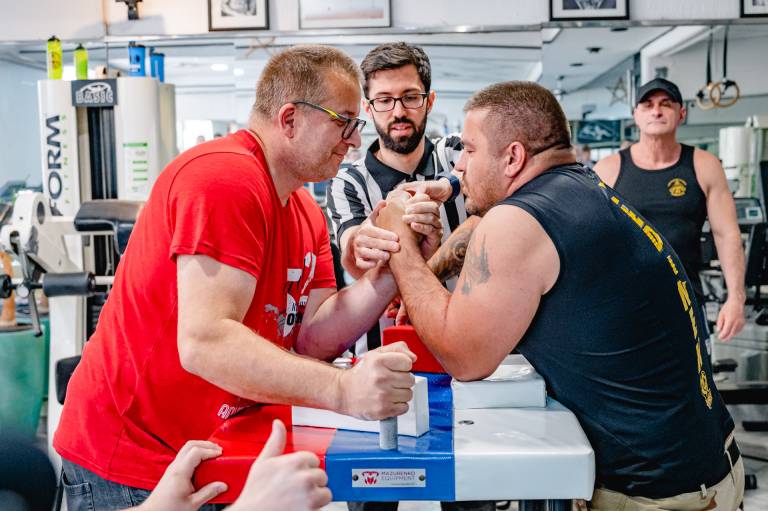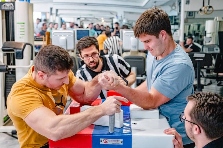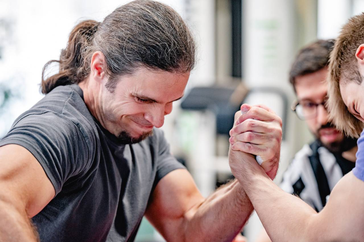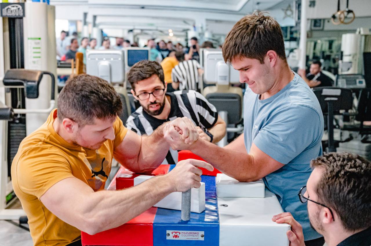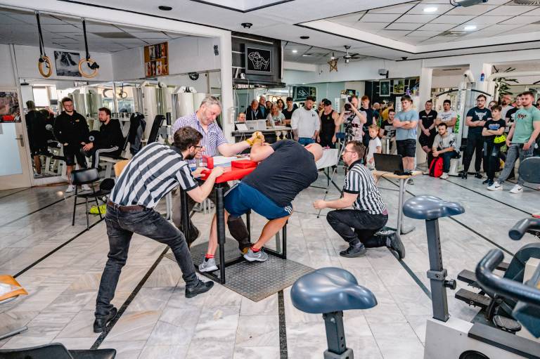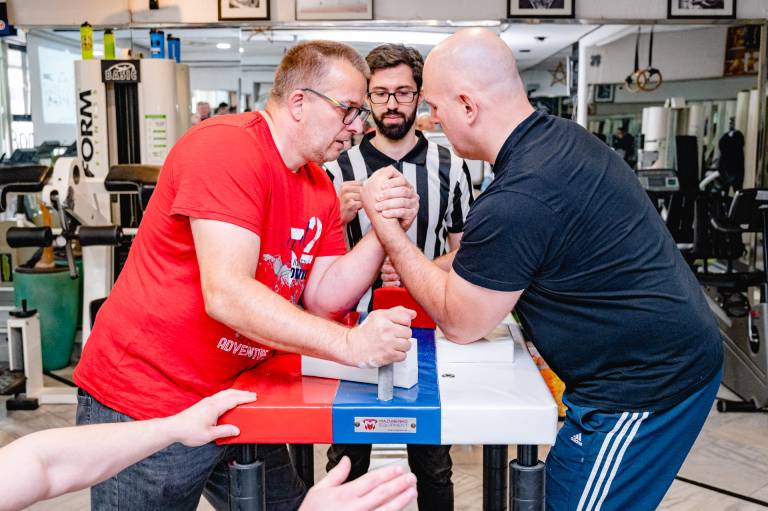 V fitnesu Top Power Studio so se danes zbrali tekmovalci v polaganju rok oziroma »armwrestlingu«.