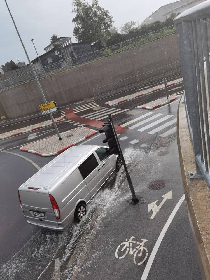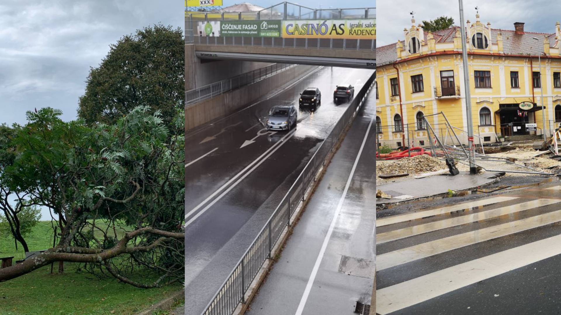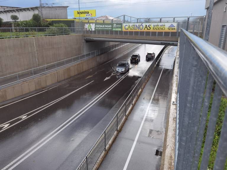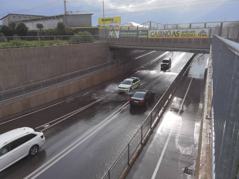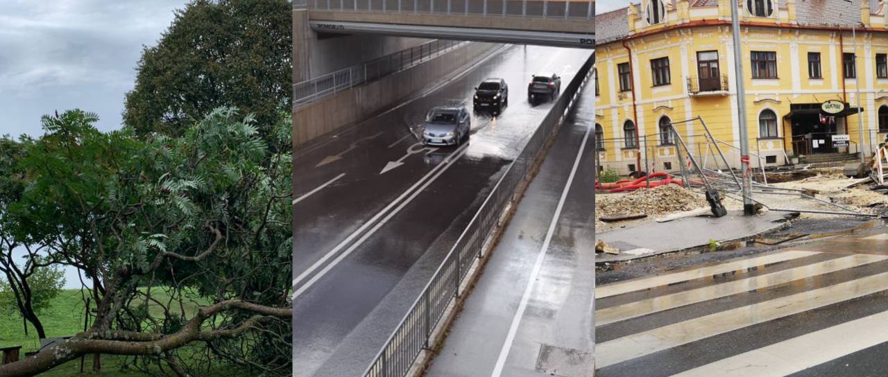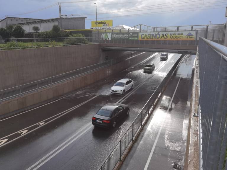 Močno deževje je danes poplavljalo ceste veter pa podiral drevje. Zaradi močnega deževja je poplavljen tudi podvoz v Murski Soboti.