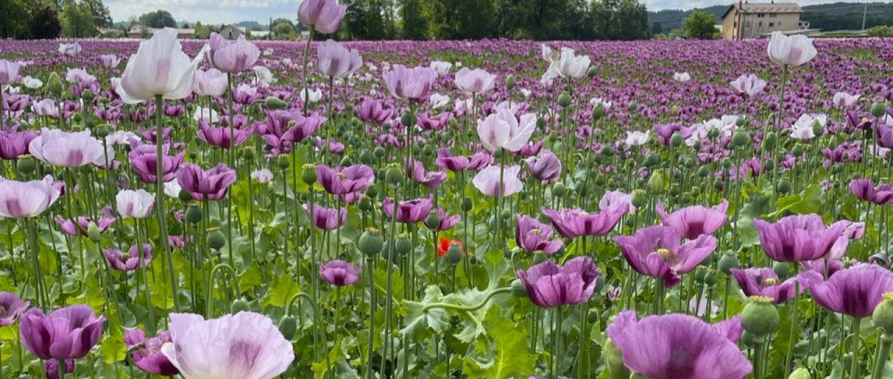 Barvita polja z vijoličnim makom v teh sončnih dneh pritegnejo marsikatero oko.