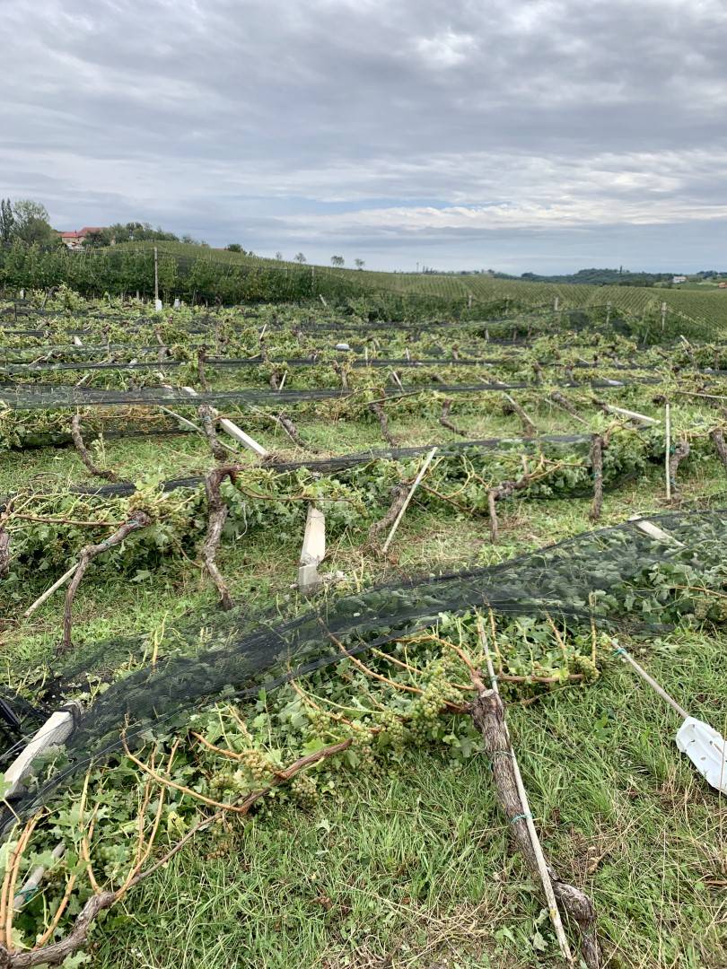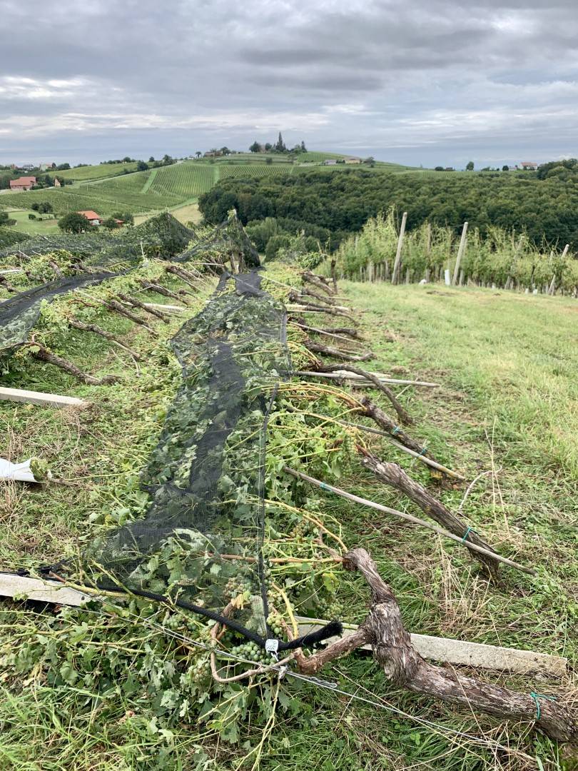 Največji ormoški vinar Puklavec Family Wines, ki je v lasti Vladimirja Puklavca, danes pregleduje vinograde in ocenjuje, da jim je neurje uničilo okoli 50 odstotkov letošnjega pridelka. Nevihta s točo in močnim vetrom je prišla ob najbolj nepravem času, saj so bili tik pred trgatvijo, zato so posledice na grozdju nepopravljive.