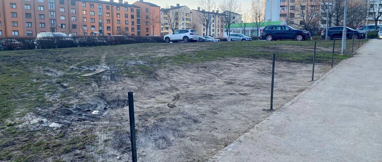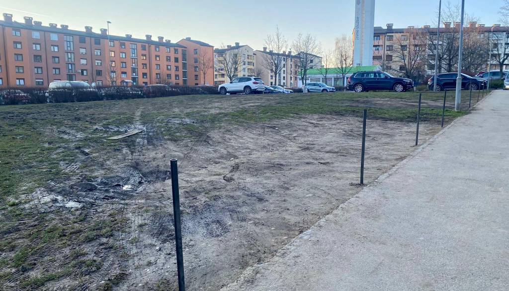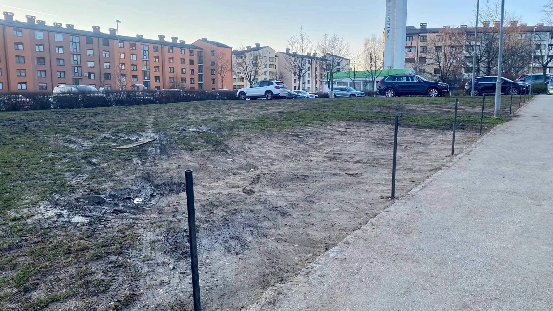 Na travnati površini, ki je precej uničena in blatna, zdaj ne morete več parkirati.