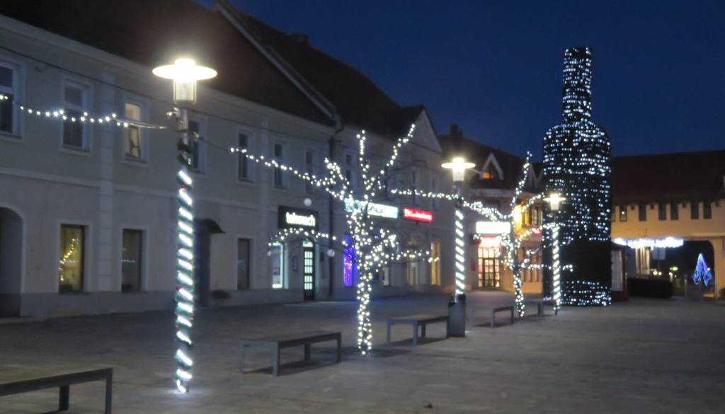 Najopaznejši element letošnje praznične okrasitve Ormoža je gotovo okoli sedem metrov visoka smreka na Kerenčičevem trgu, ki ima obliko vinske steklenice. Okrašena je z zelenjem in okoli 3.000 lučkami.