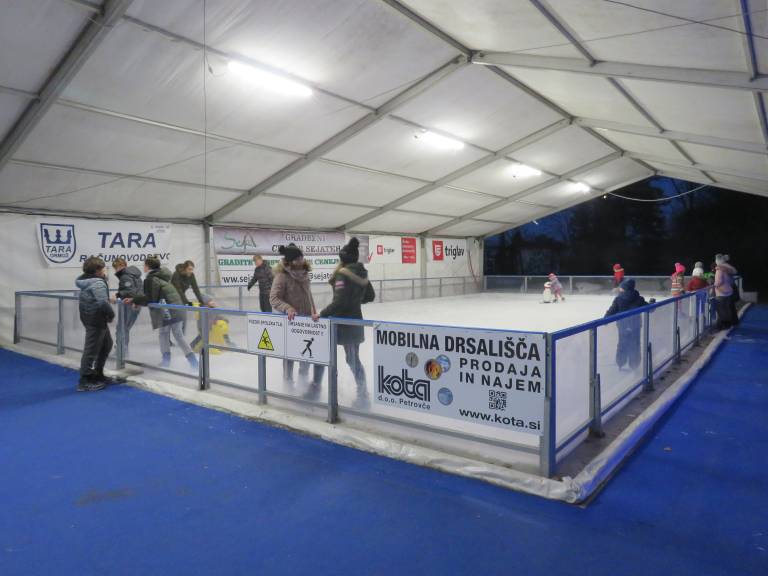 Poleg 200 kvadratnih metrov ledne površine so podeskali tudi veliko površino poleg drsališča, ki omogoča druženje in zabavo tudi za ostale obiskovalce.
