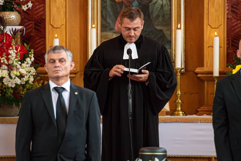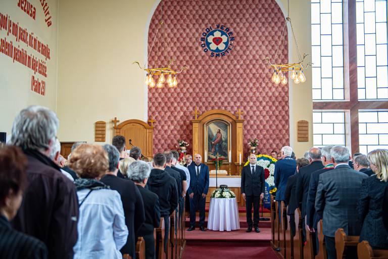 V evangeličanski cerkvi v Moravskih Toplicah je bila ob 12. uri pogrebna slovesnost, ob 13. uri je sledila še žalna slovesnost za pokojnega Gezo Ernišo.