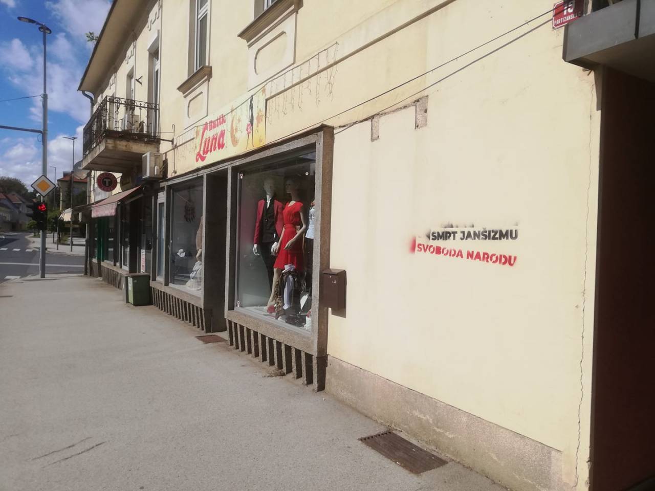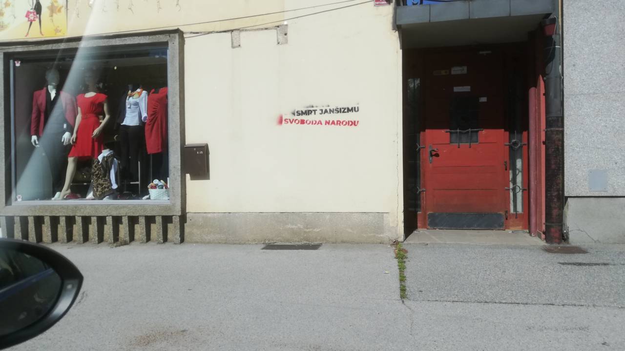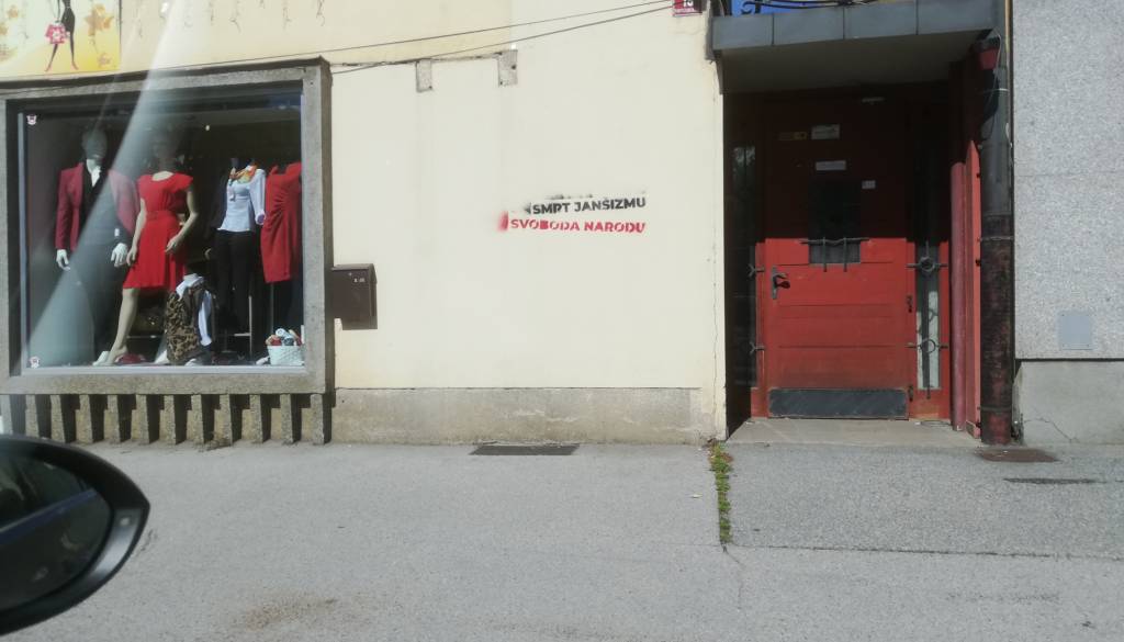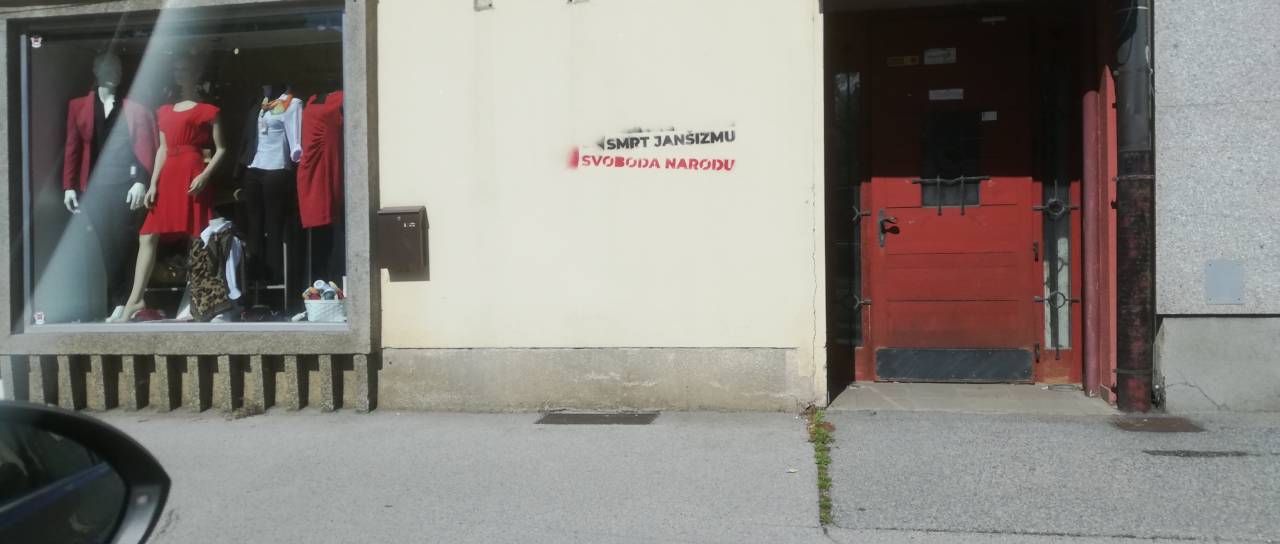 V središču Gornje Radgone razburja zapis, ki se glasi: »Smrt janšizmu, svoboda narodu.«