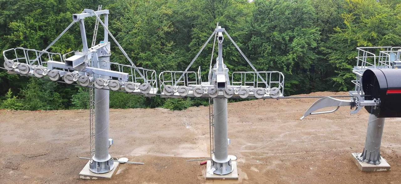 Na vmesni postaji Pohorske vzpenjače je bila po postavitvi novih stebrov tudi že vpeta jeklenica žičnice.