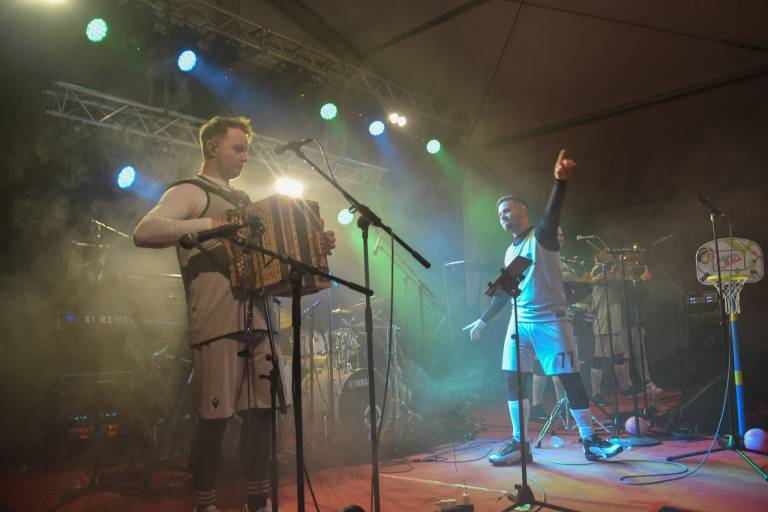 Obiskovalce v maskah so pod velikim ogrevanim šotorom v petek razgreli Dejan Vunjak, Ines Erbus in Drugo Dugme. V soboto pa so za pravo pustno zabavo poskrbeli fantje iz Ansambla Stil in Tanja Žagar.
