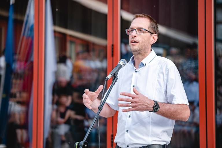 V imenu Zbornice za arhitekturo in prostor Slovenije je spregovoril tudi Aleksander Saša Ostan, ki se je med drugim dotaknil revitalizacije mestnih središč: