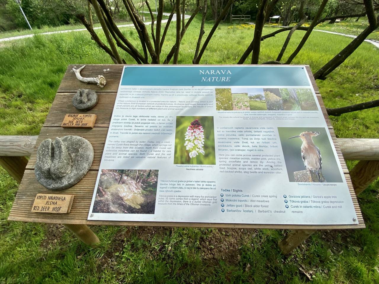 Na učni poti si boste lahko na interpretativnih tablah prebrali in spoznali značilnosti in ekologijo naravnih vrednot, zavarovanih rastlinskih in živalskih vrst ter videli, kakšno je sodelovanje narave in človeka. Lahko pa na sprehodu zgolj opazujete naravo in uživate.