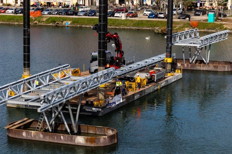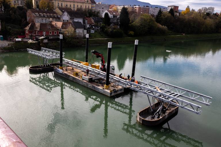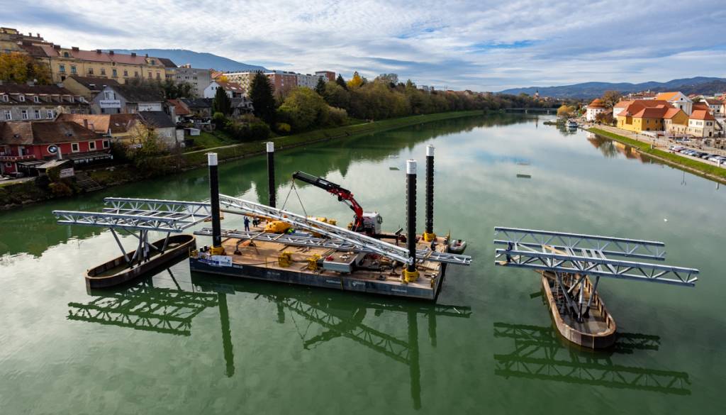 Dela pa na mariborskem Lentu hitro napredujejo, saj bo že čez nekaj dni nastajajoča brv dosegla oba bregova Drave ter s tem povezala Lent in spodnji del Tabor.